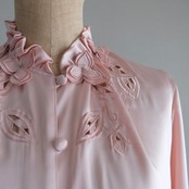 古着 ピンクカット&フラワーフリルブラウス