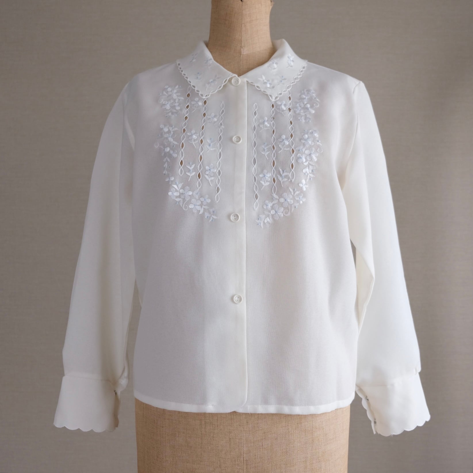 襟と胸元の刺繍がレトロでかわいらしいブラウスです。ボタンはホックになっています。