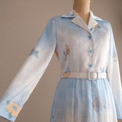 昭和レトロな花模様がかわいい70sワンピースです。パステル系の色合いもすてきです。