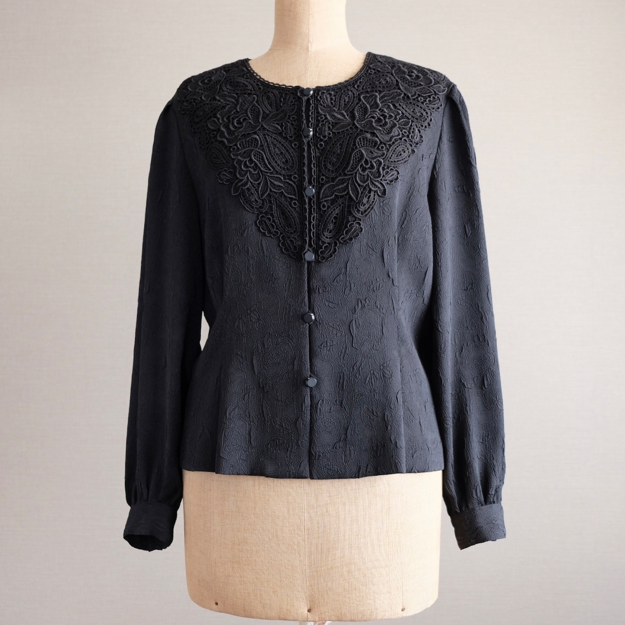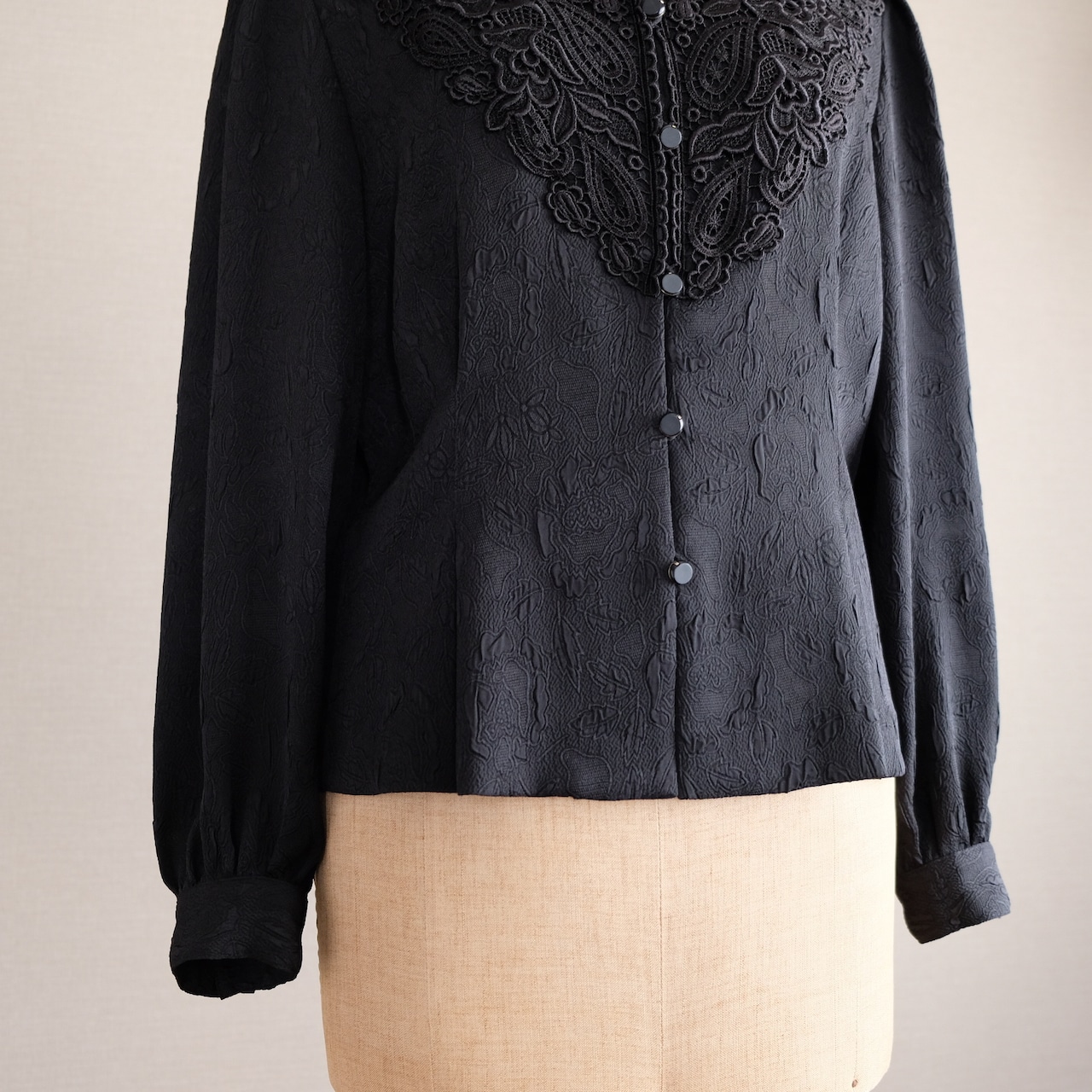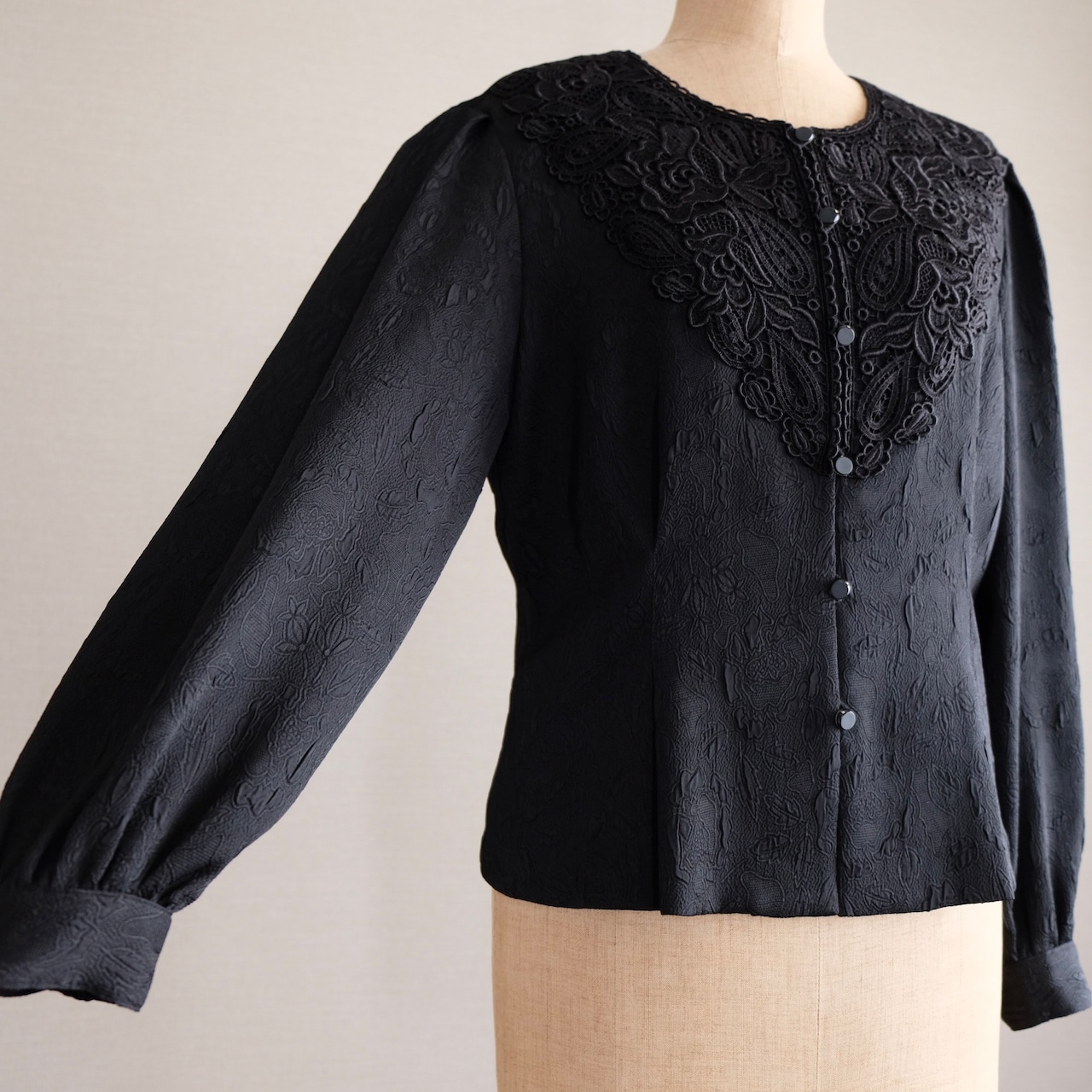 豪華なケミカルレースがすてきなブラウスです。生地にも柄が織り込まれております。