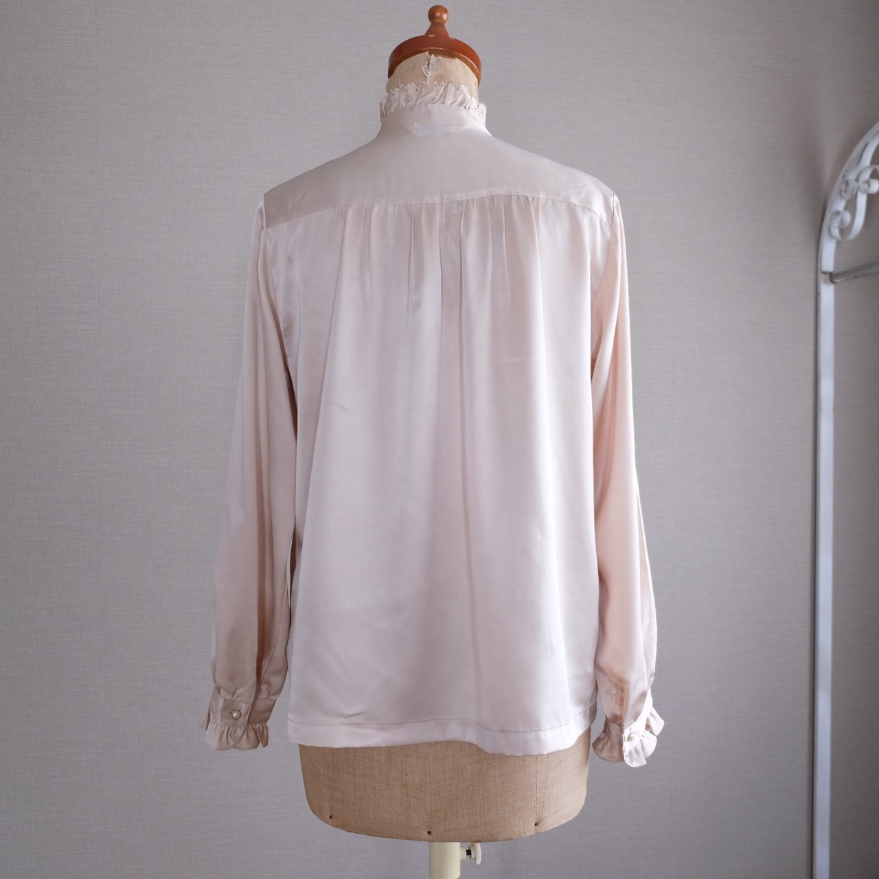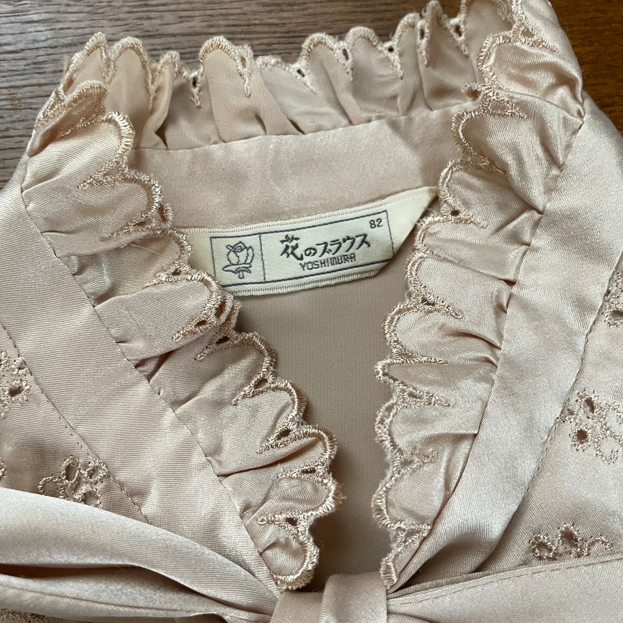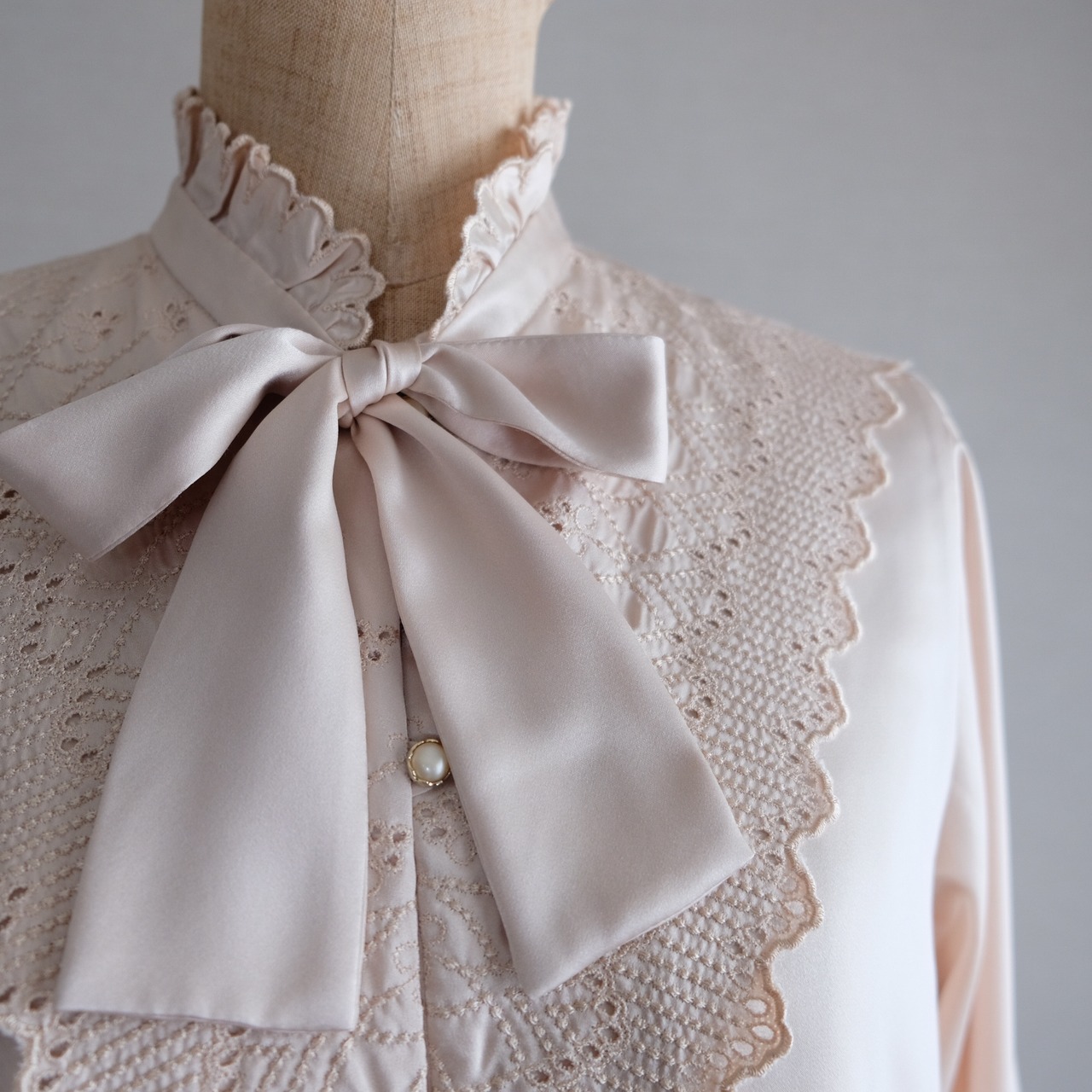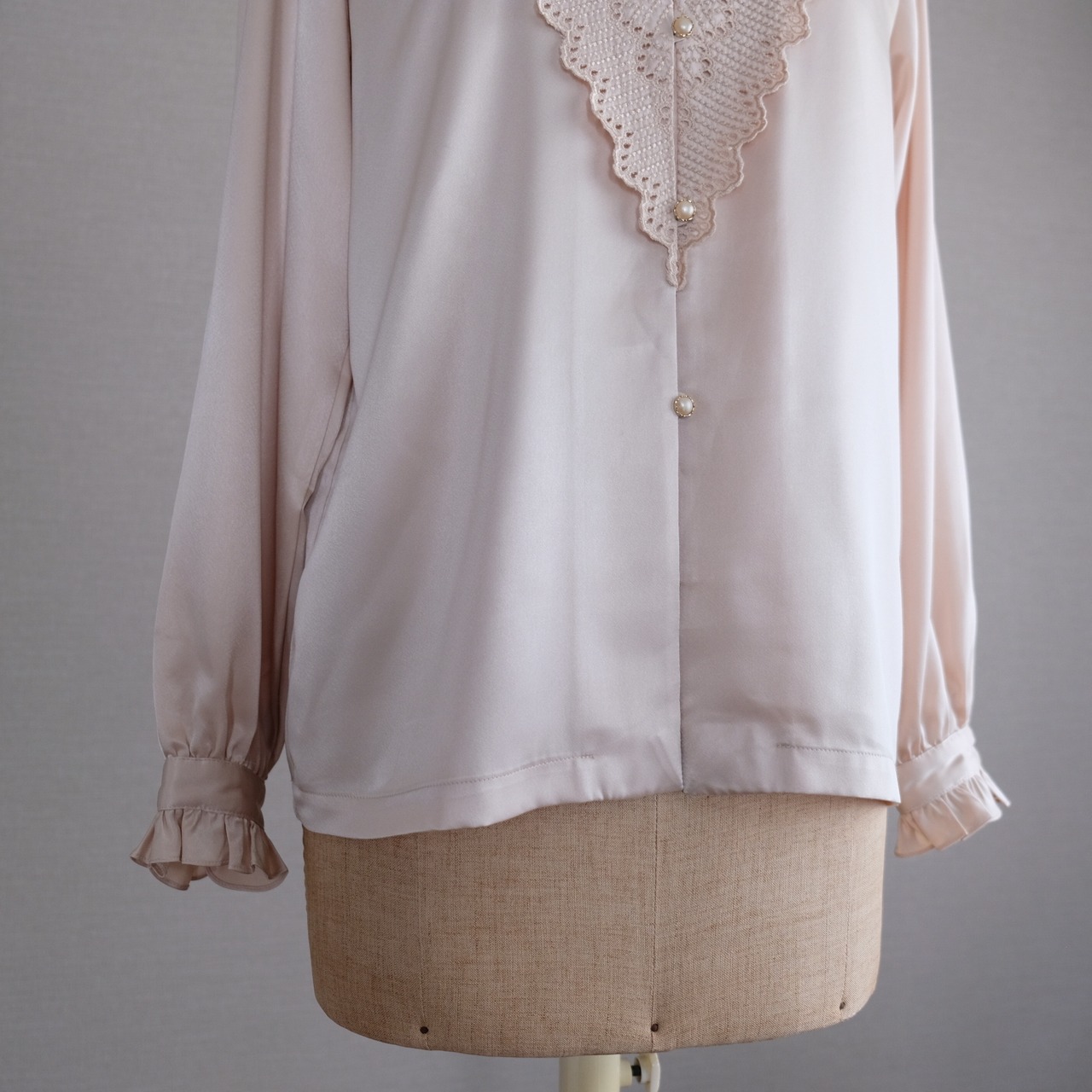 古着 ライトベージュレース&リボンブラウス