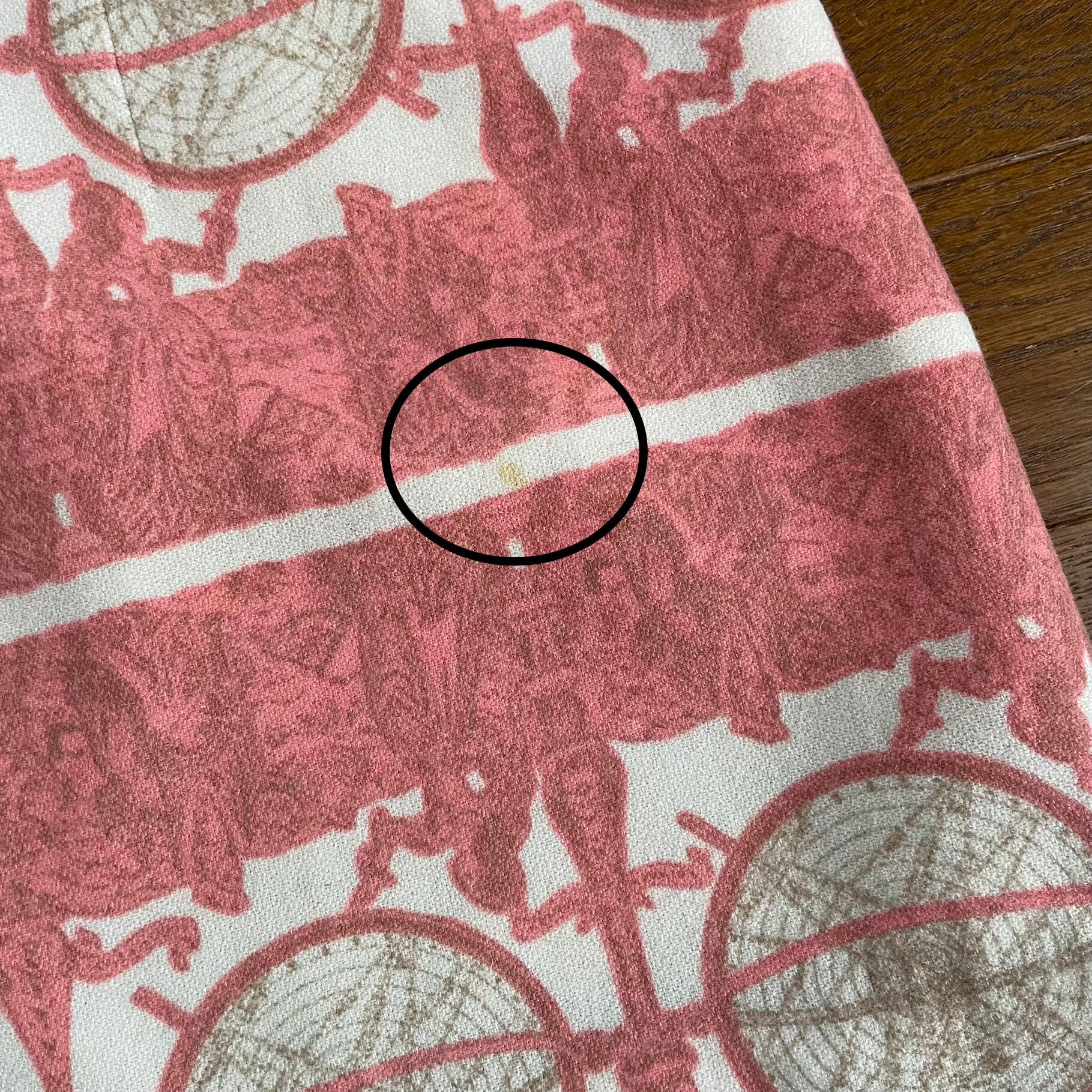 左袖部分(写真11枚目)、スカート部分(写真12枚目)に薄いシミあり