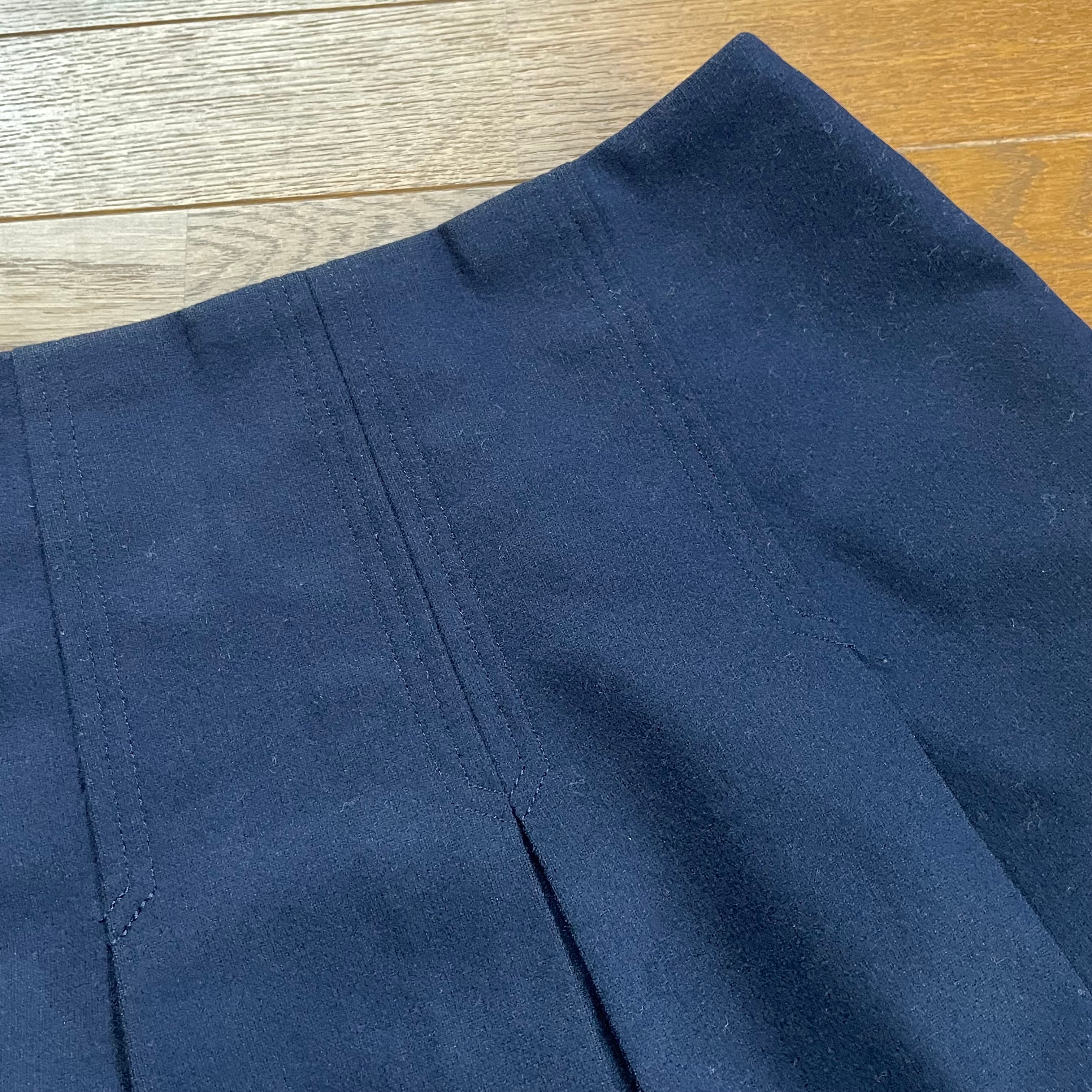 シンプルなネイビーのボックスプリーツスカートです。レトロファッションにも合わせやすいお役立ちアイテムです。