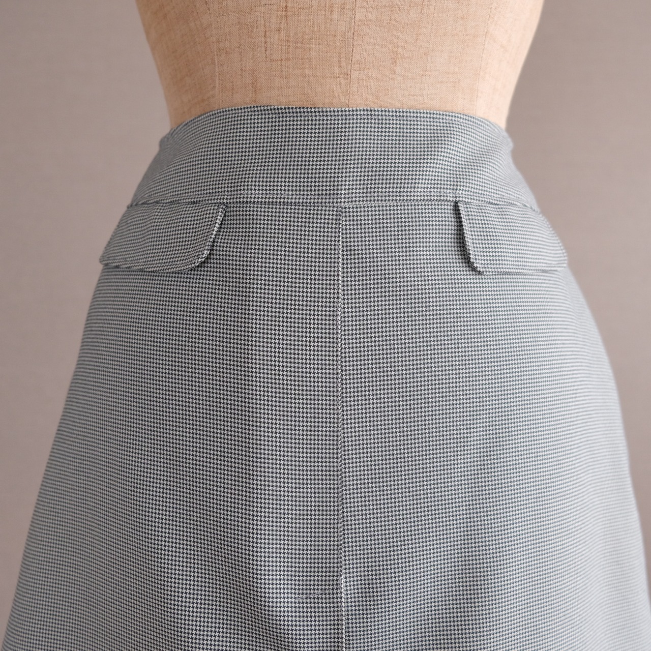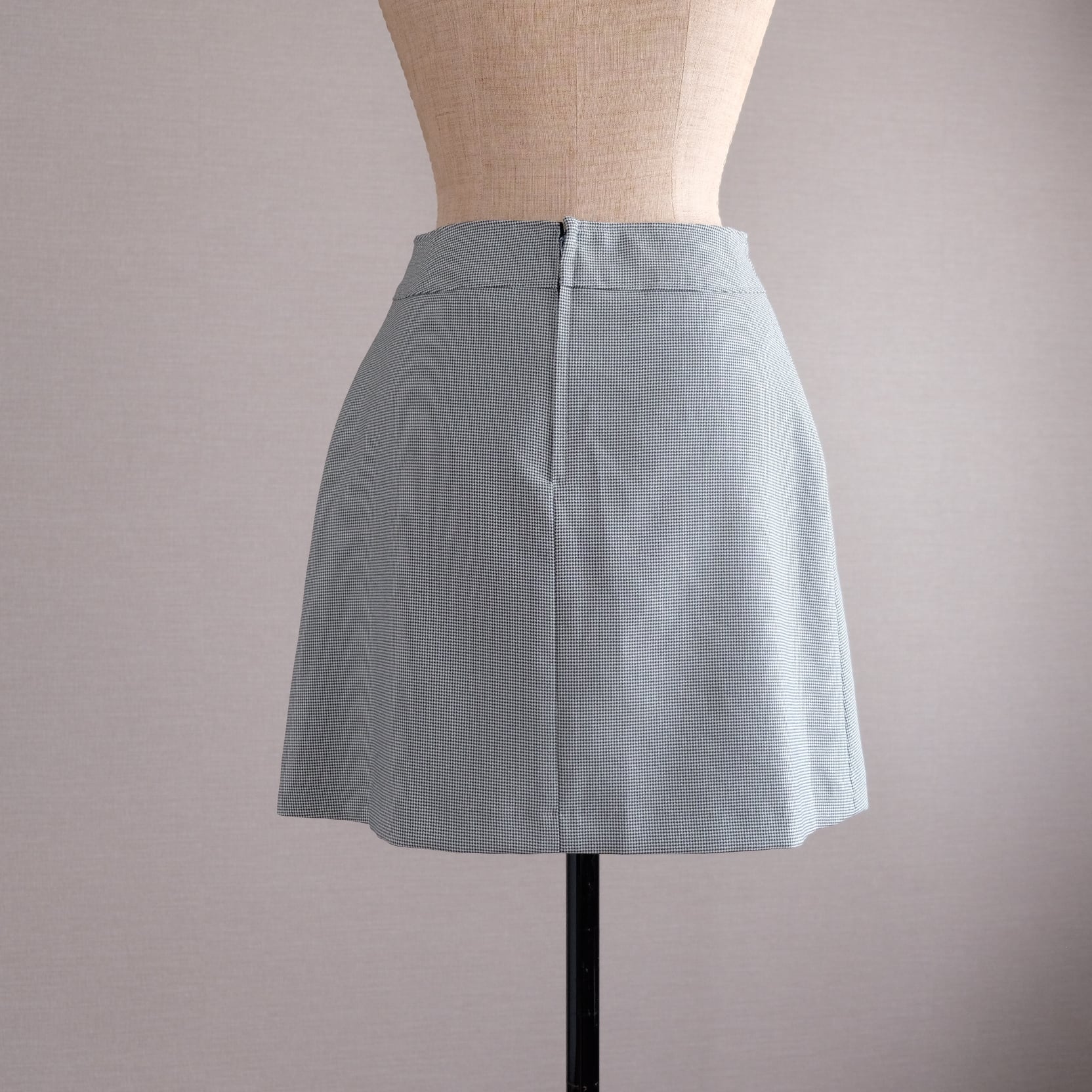 レトロデザインがかわいい台形ミニスカートです。カラフルなニットやベレー帽などと合わせて60sに着こなしてください。