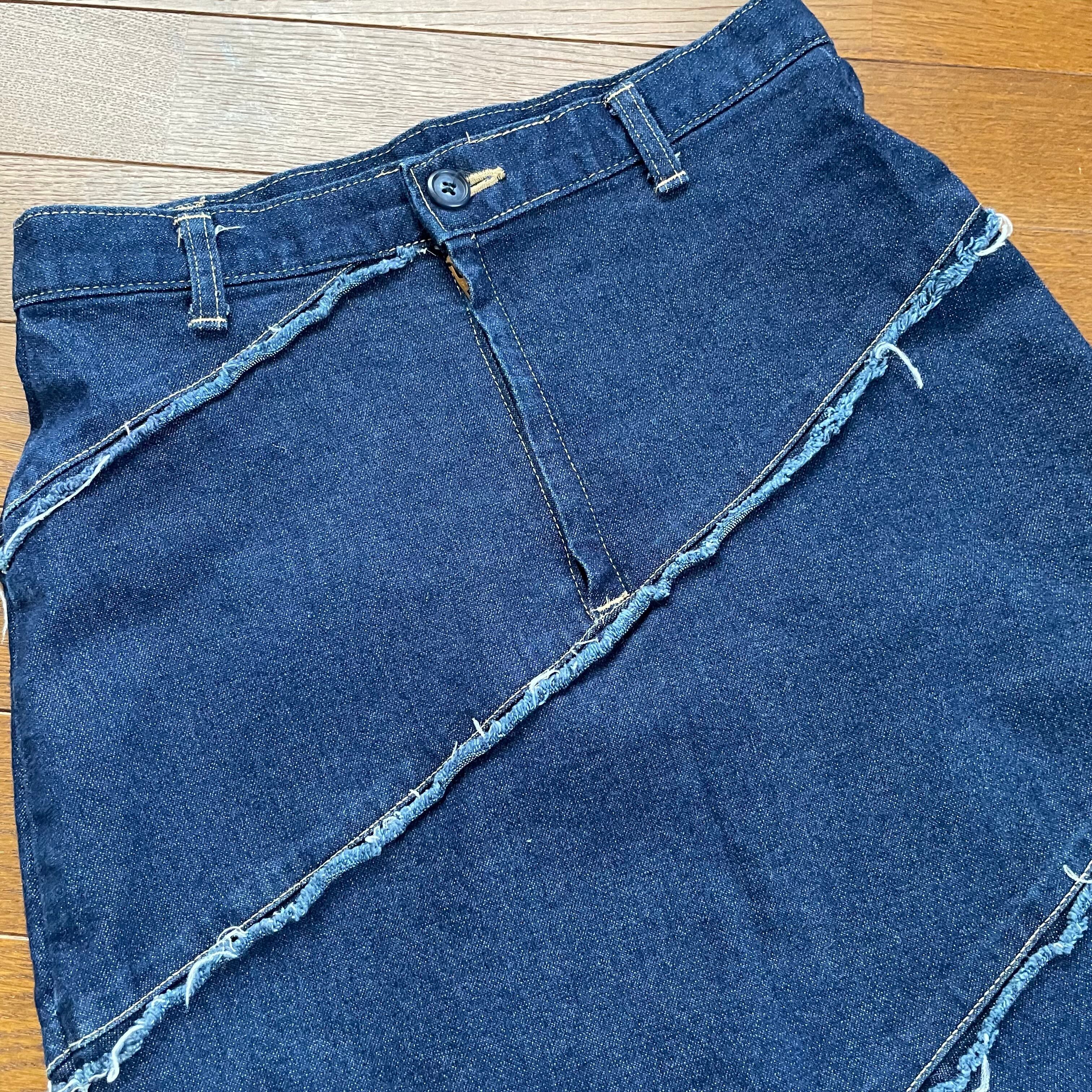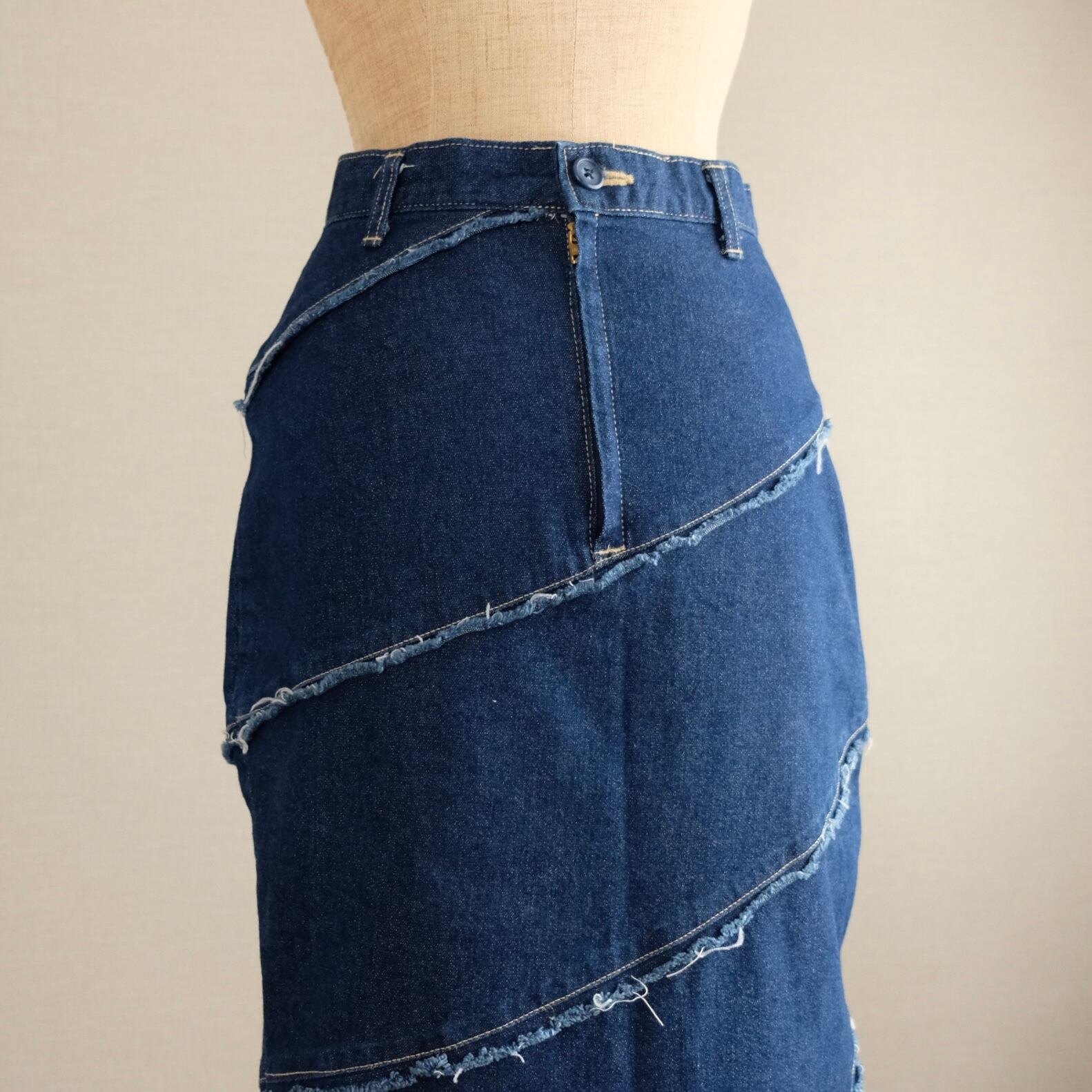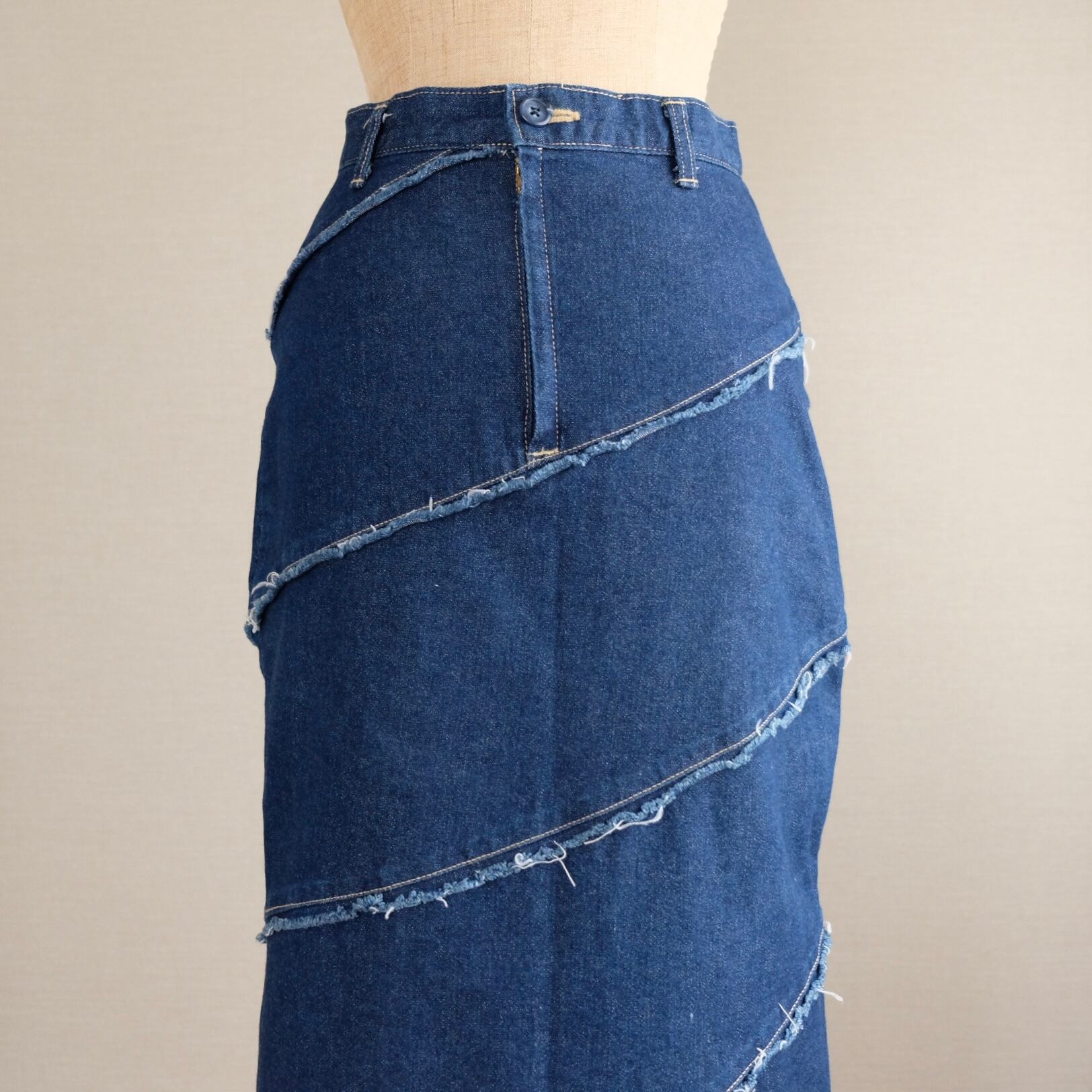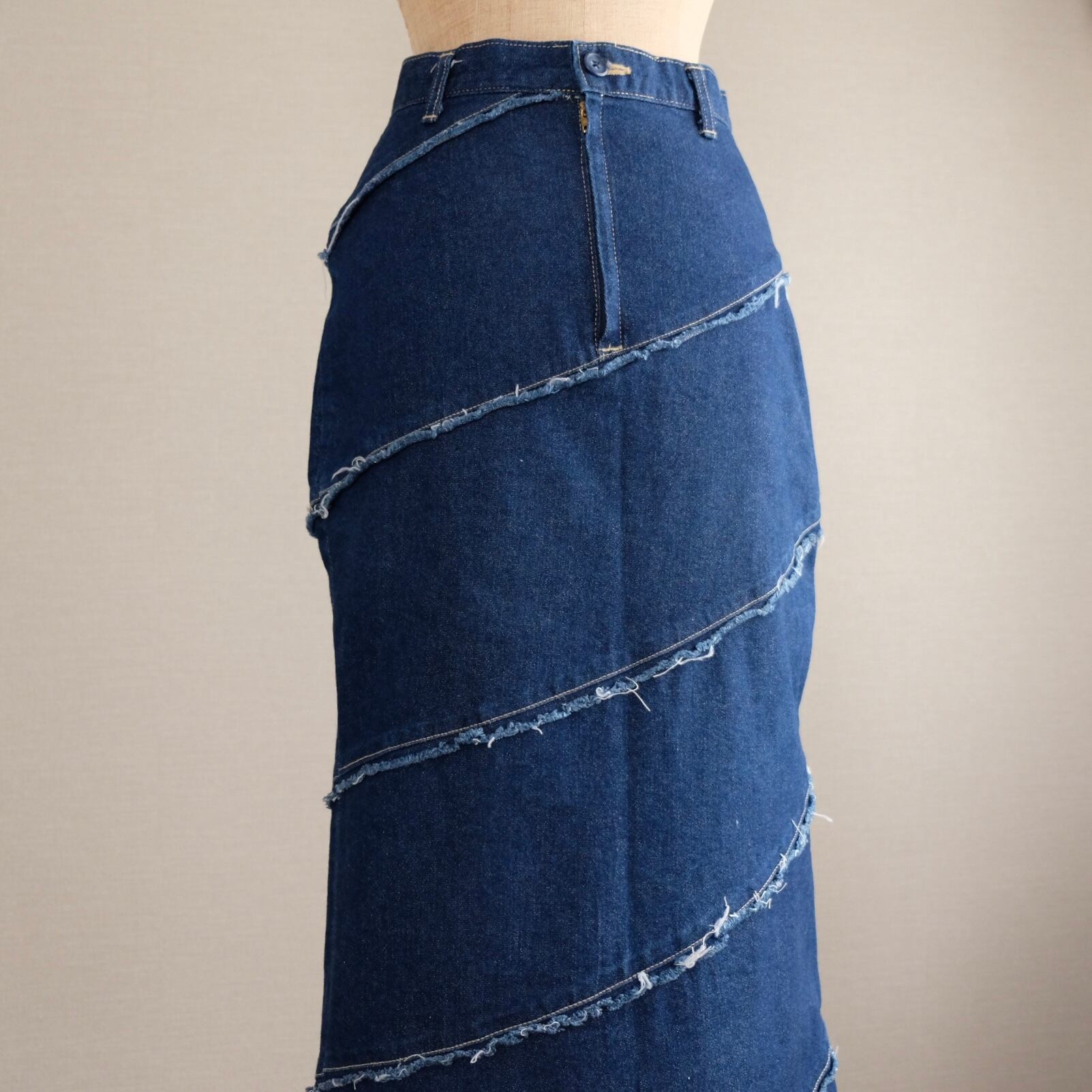 カッコいいデニムのロングスカートです。おそらく90年代-2000年代くらいのお品かと思いますが、70sな着こなしにもマッチしそうなマルチアイテムです。
