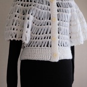 フレア袖とショート丈がかわいい編みカーディガンです。さまざまなアレンジが楽しめそうなお品です。