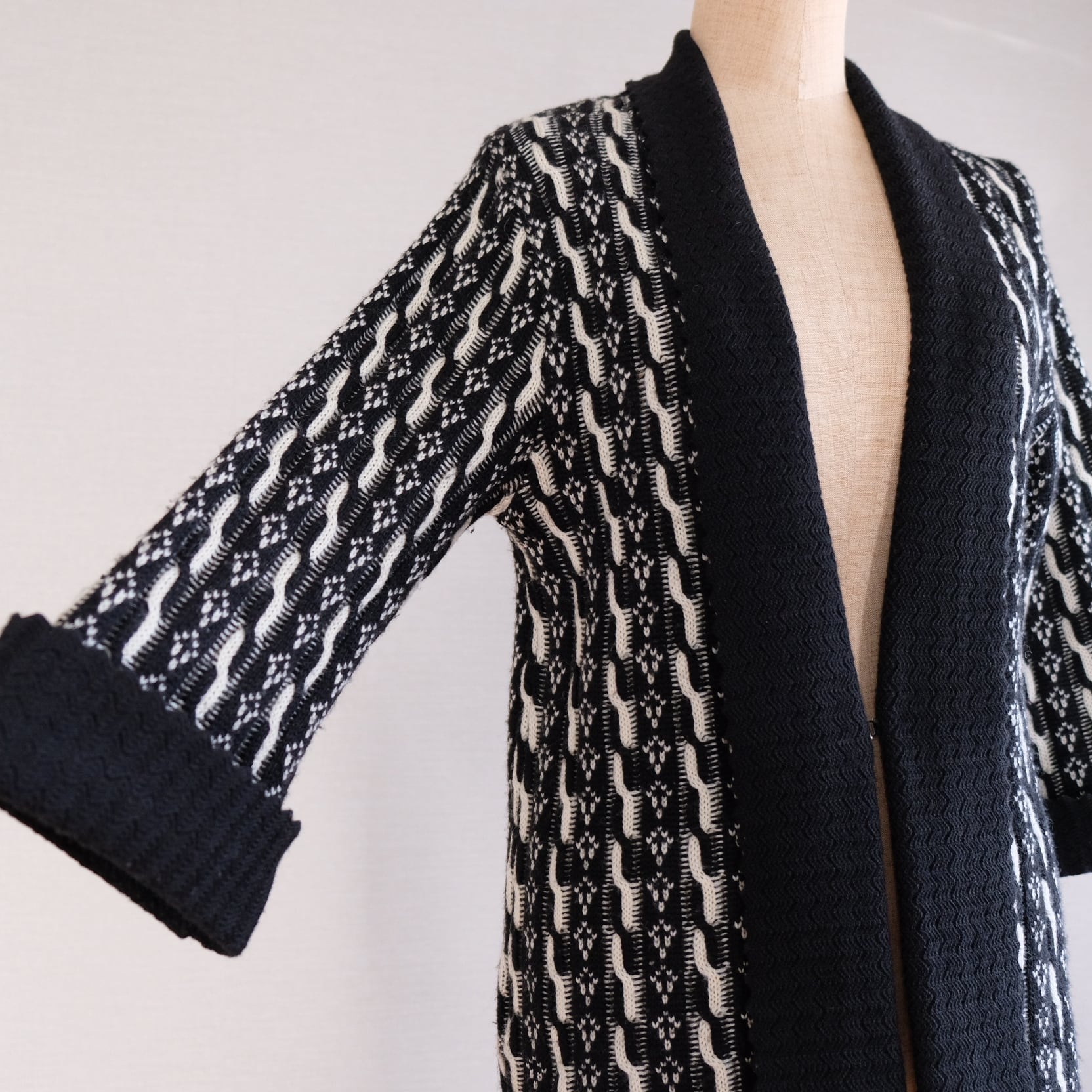 モノトーン柄とガウンのようなデザインがレトロなニットカーディガンです。なかなか雰囲気の良いお品です。