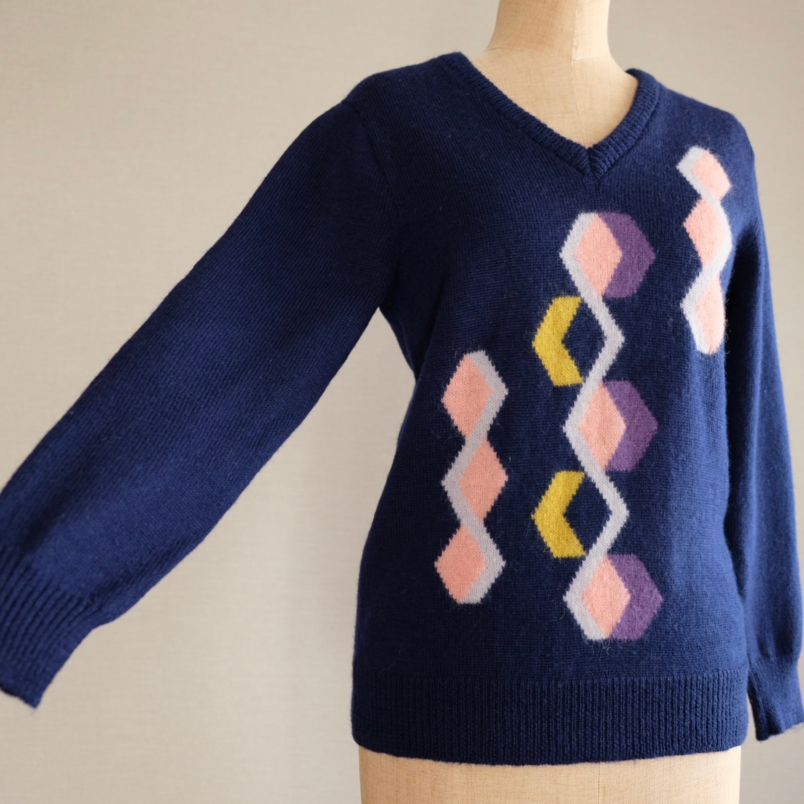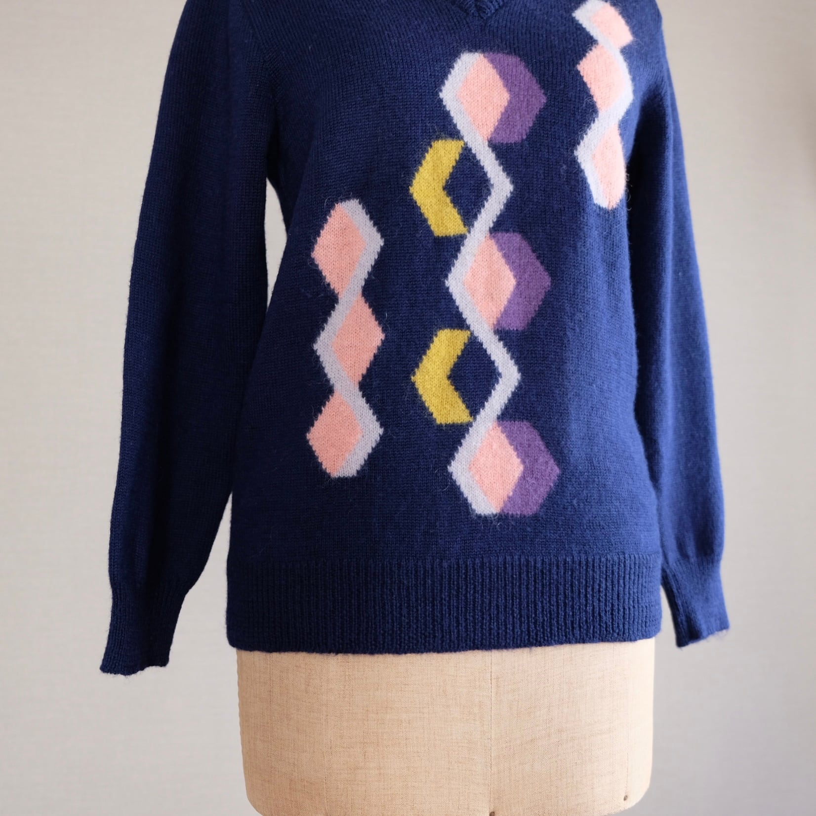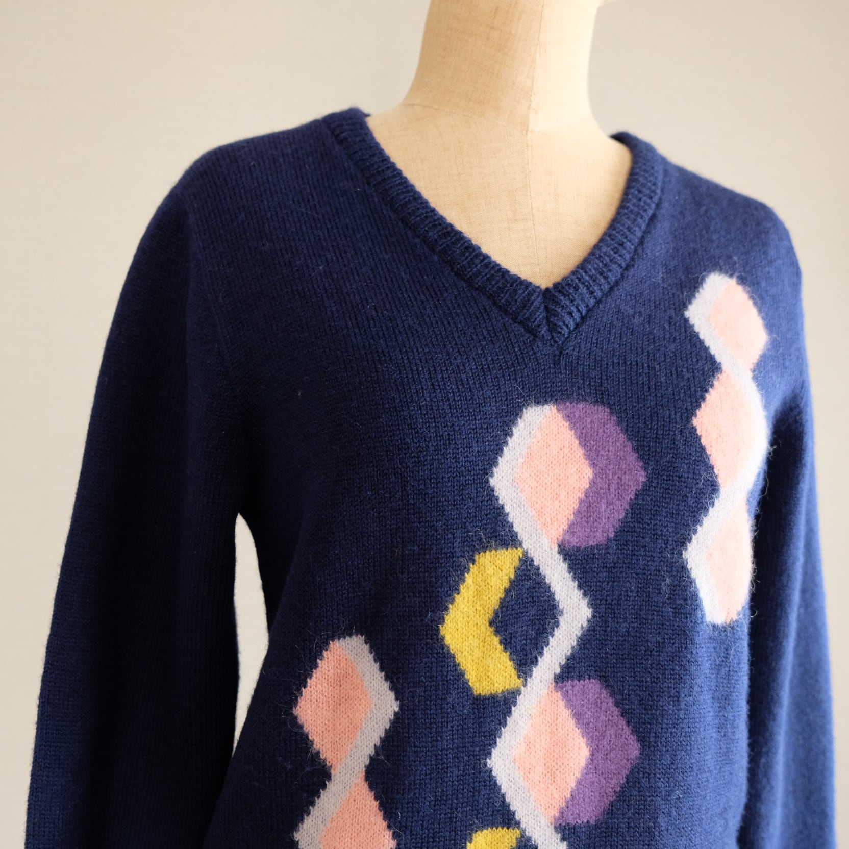 ネイビー菱形模様セーター