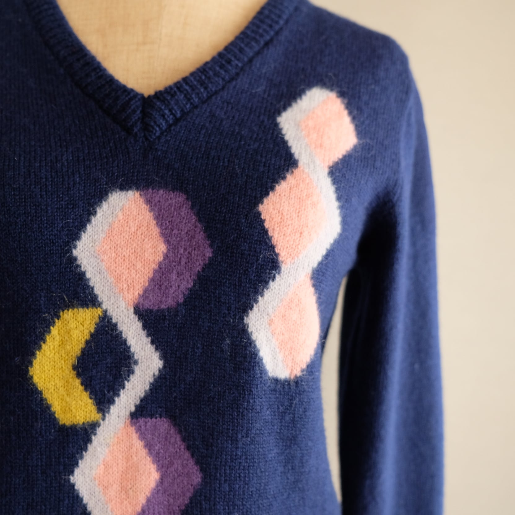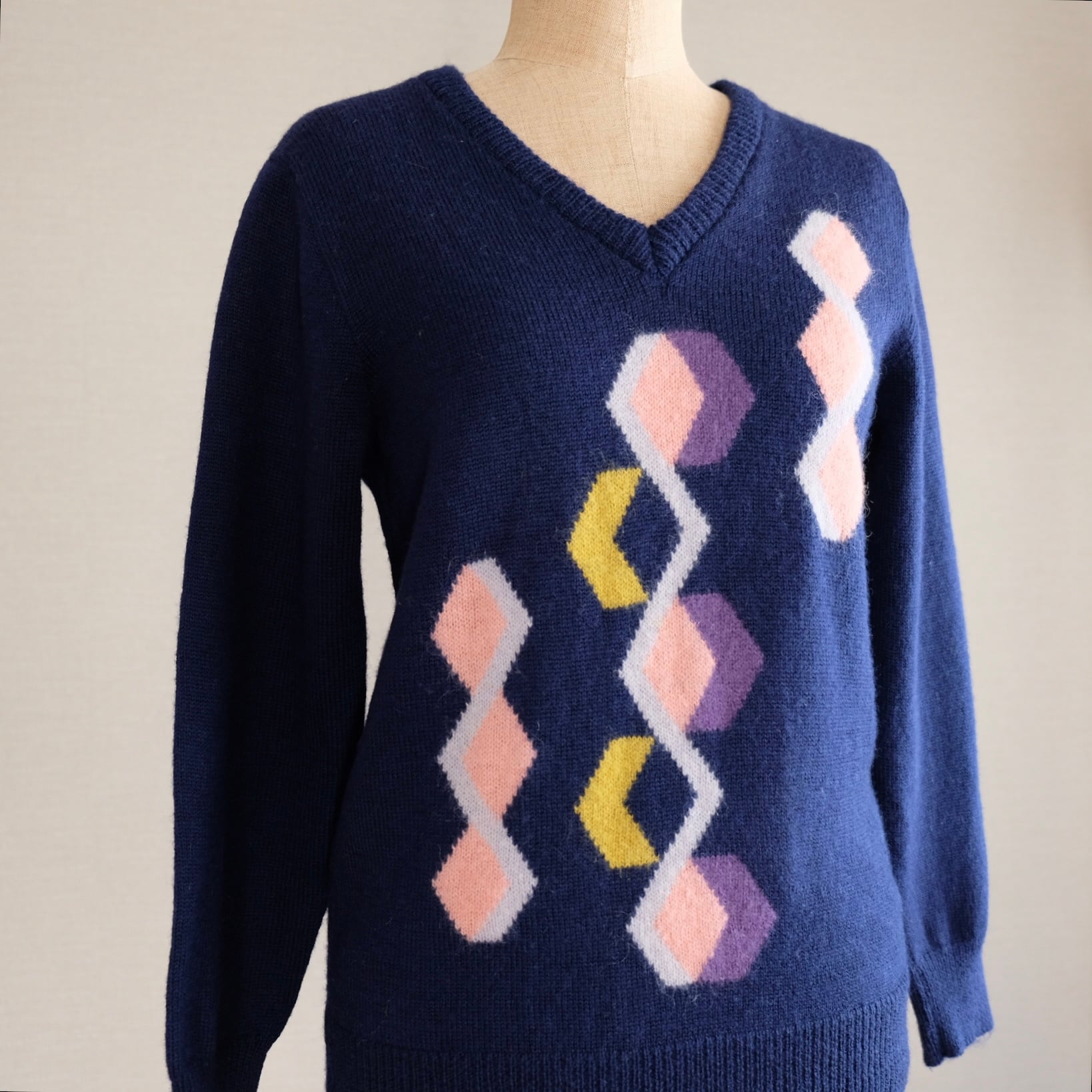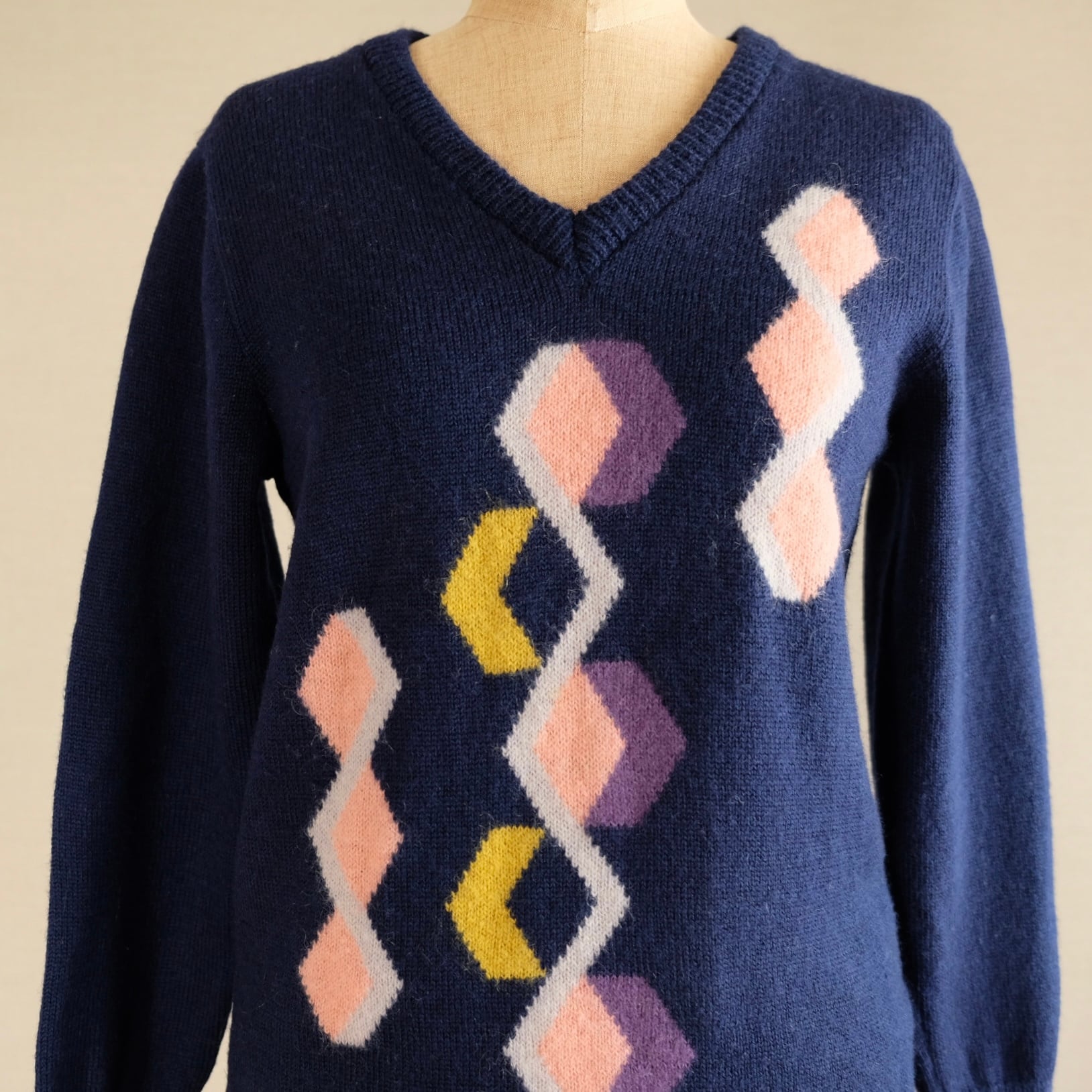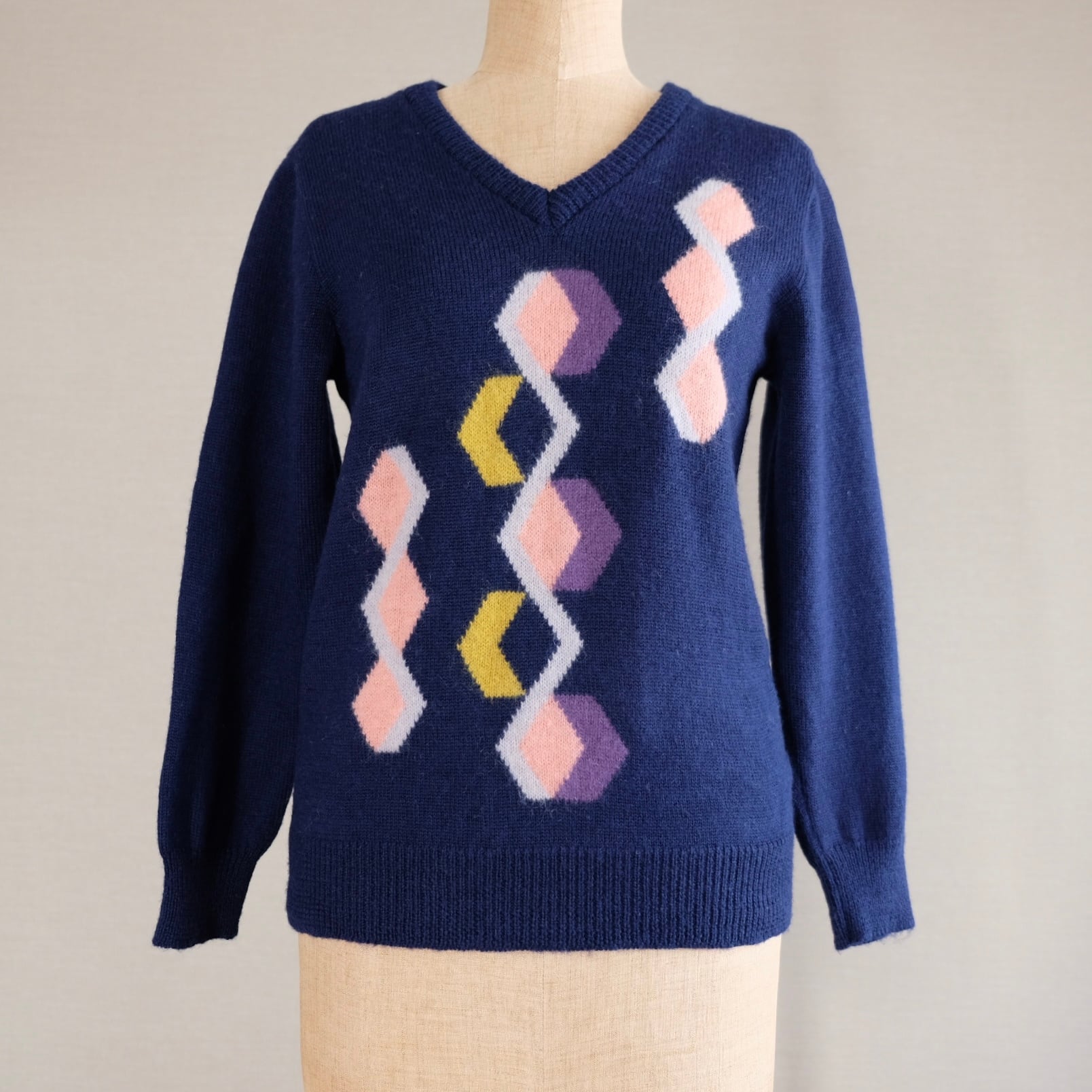 ネイビー菱形模様セーター