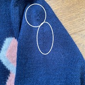 左肩・袖上側部分に穴あき補正3箇所あり(写真11-13枚目)