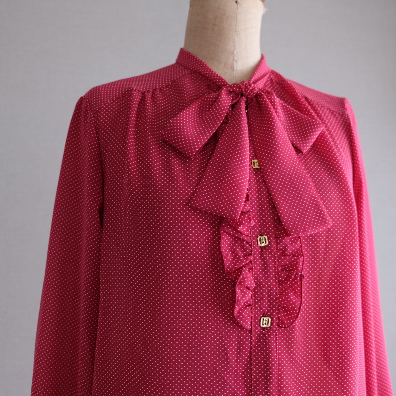 古着 ドット&リボンフリルブラウスWR