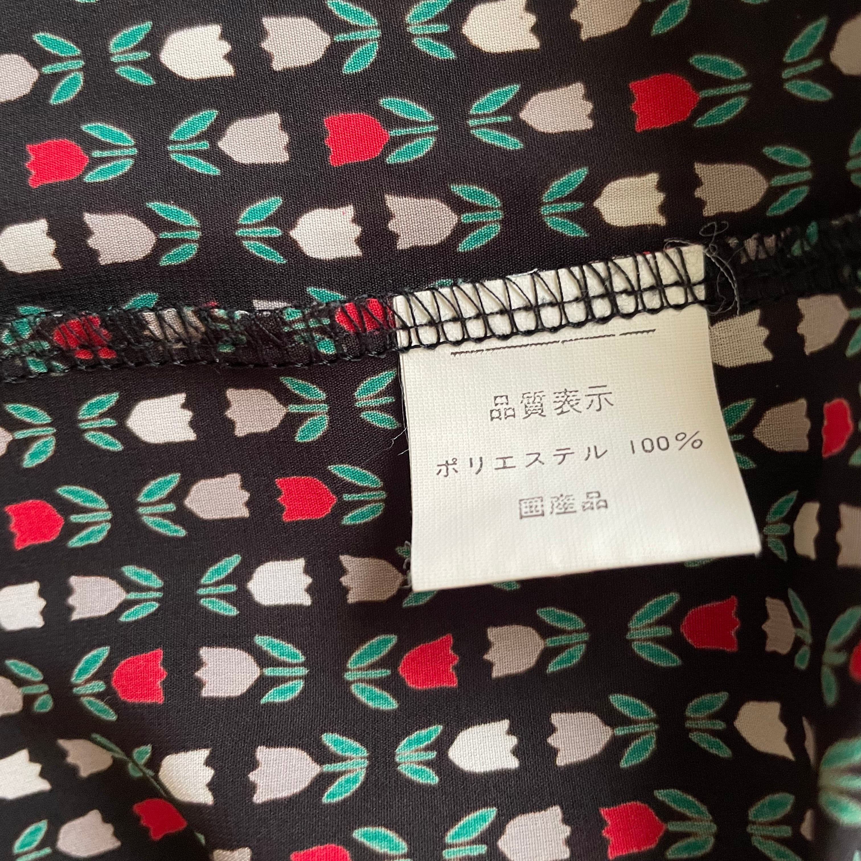 古着 チューリップ柄ブラックブラウス