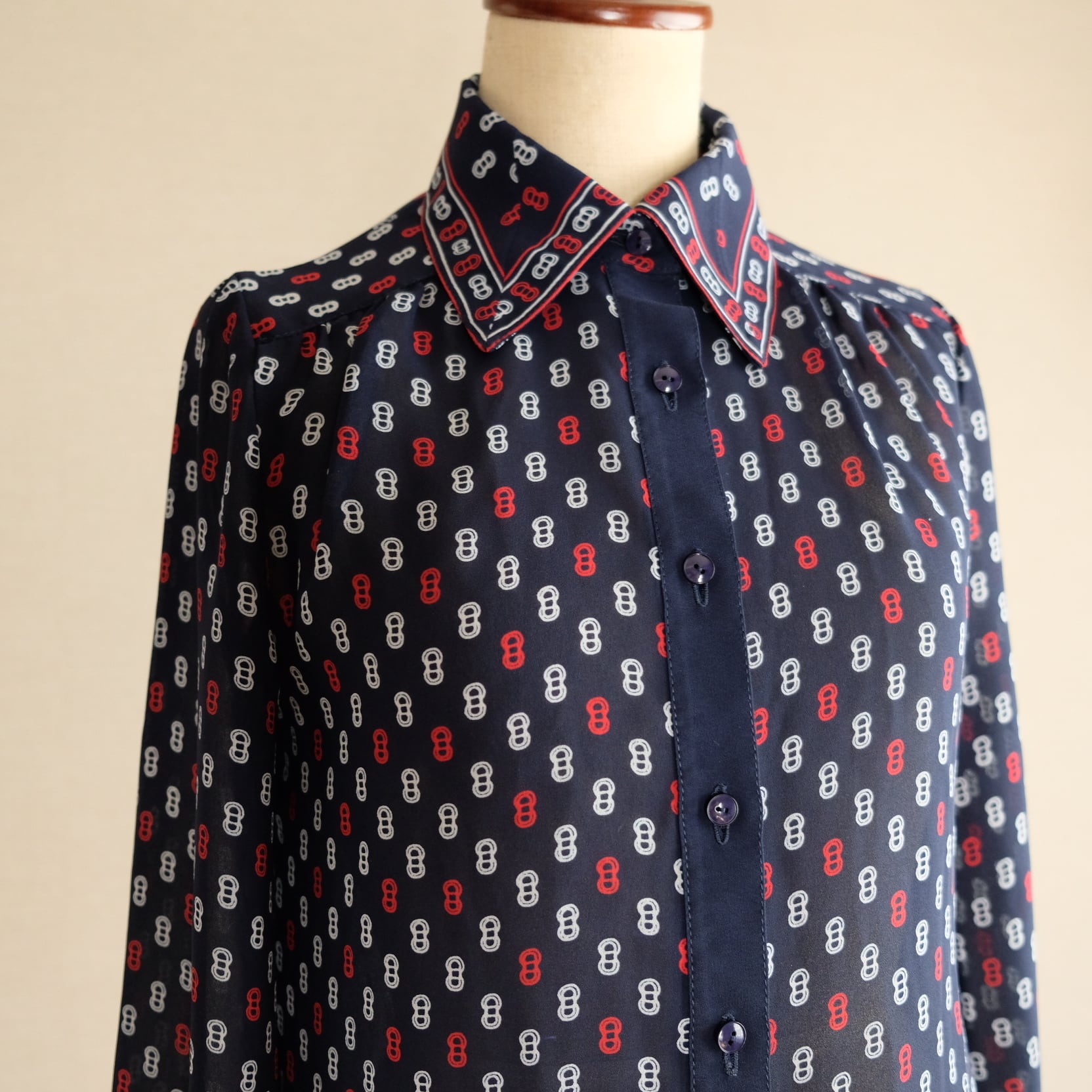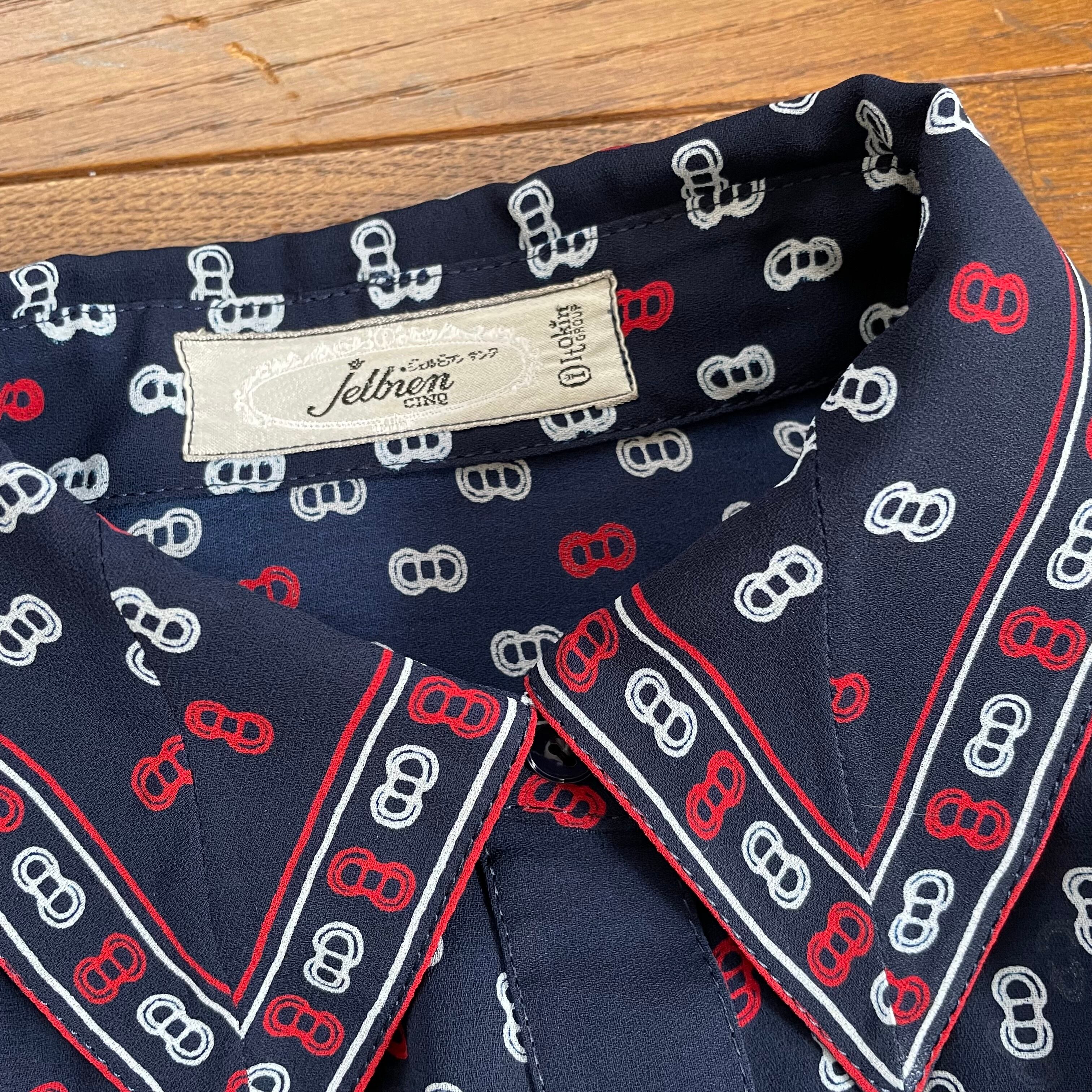 古着 ネイビートリコ総柄ブラウス