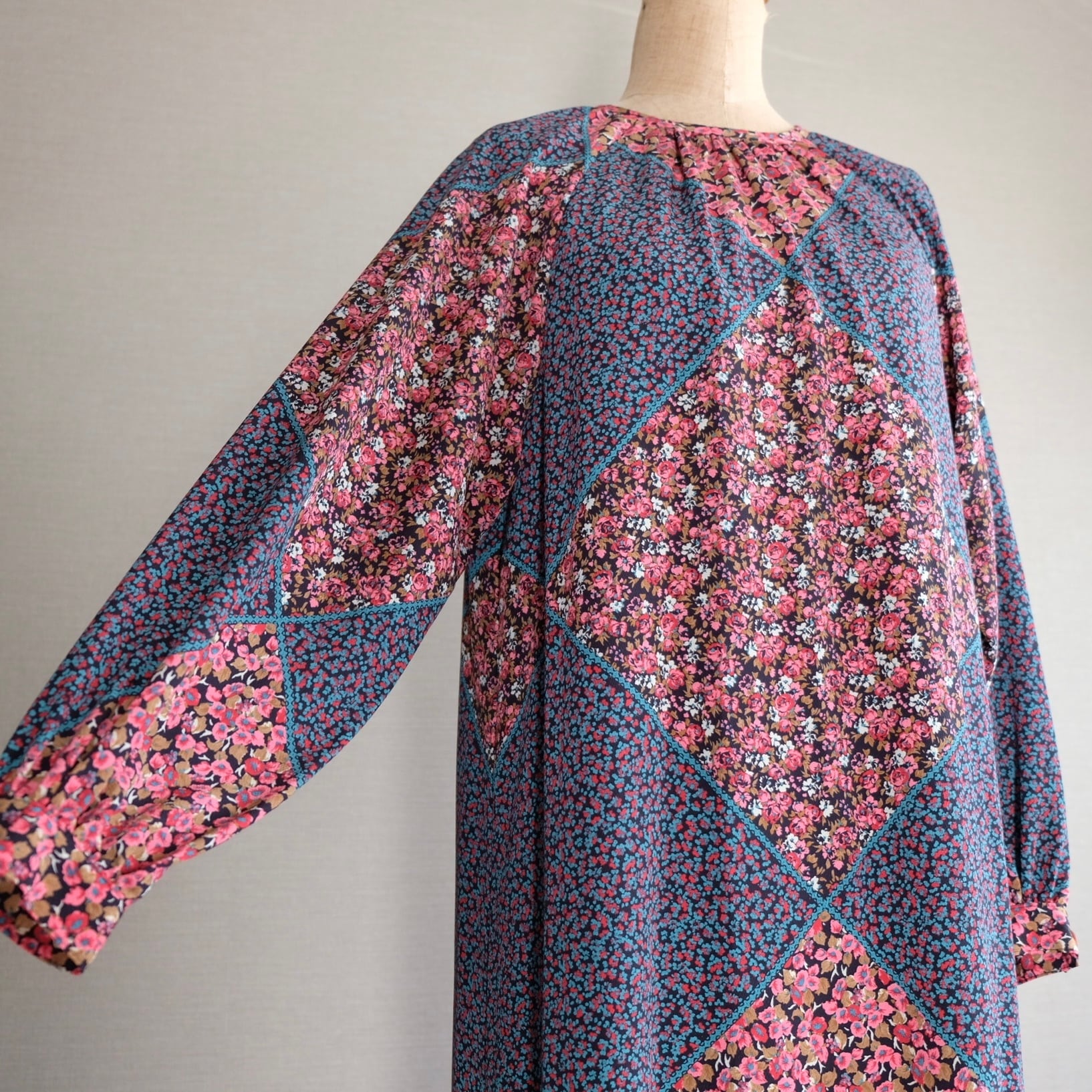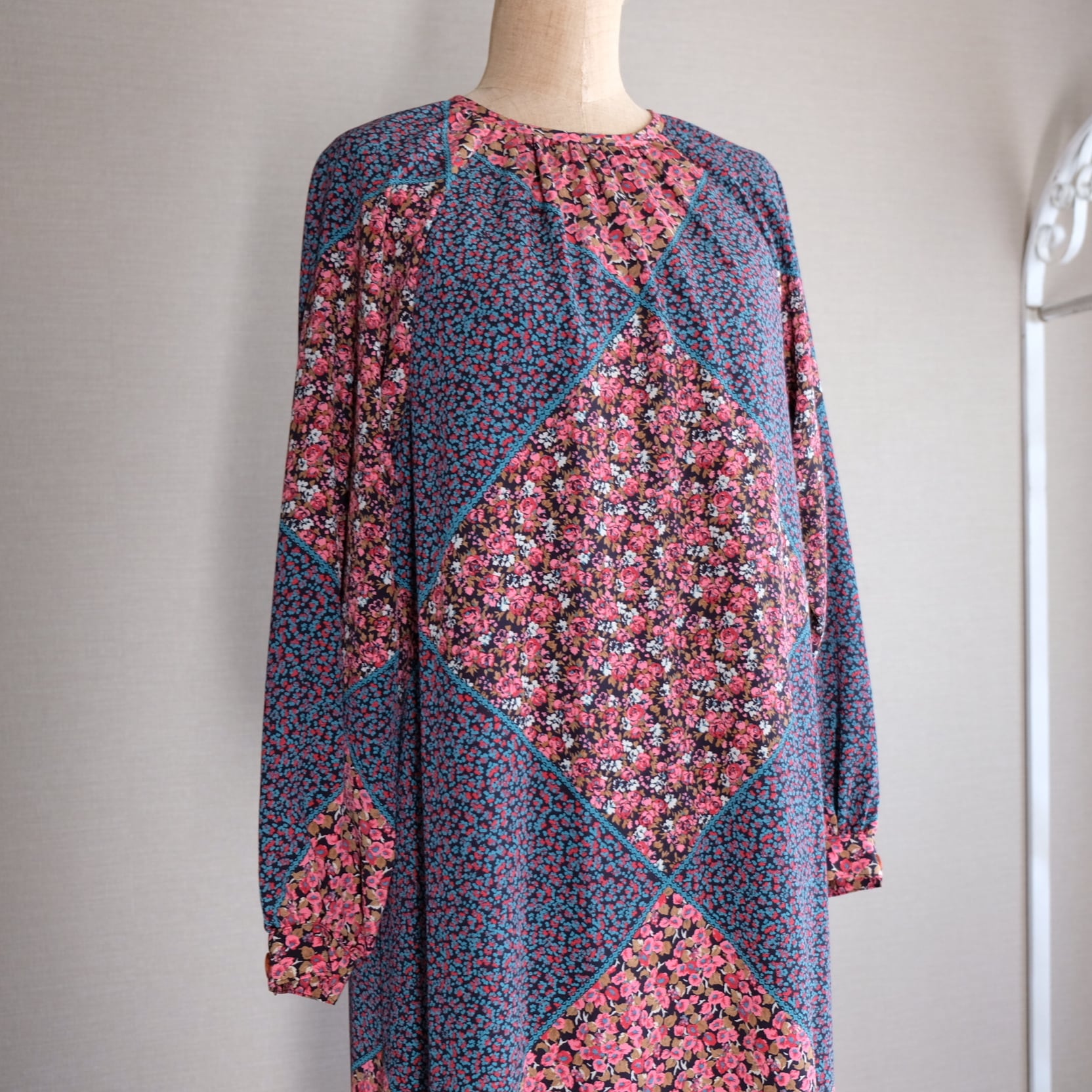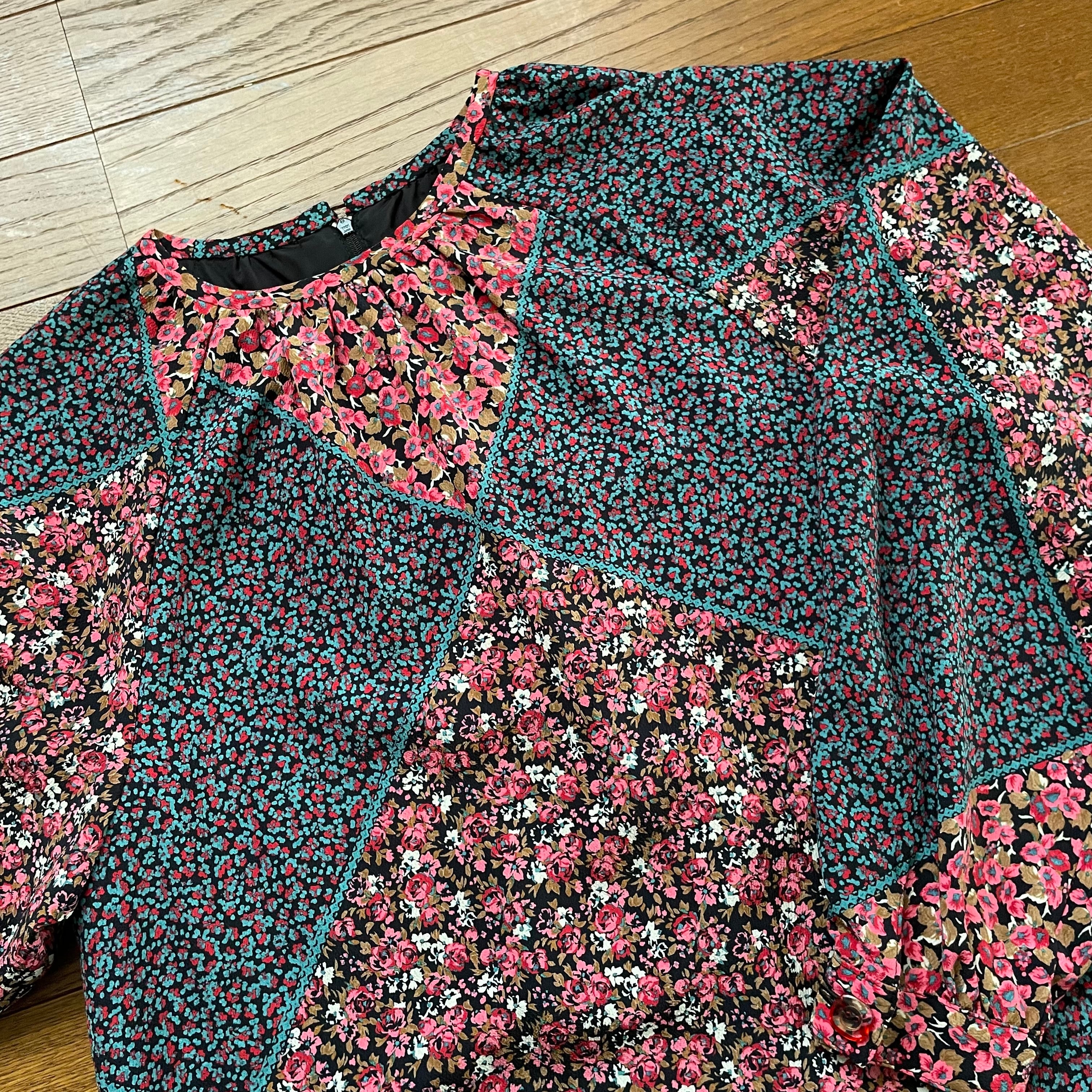 古着 小花&ダイヤ柄ワンピース