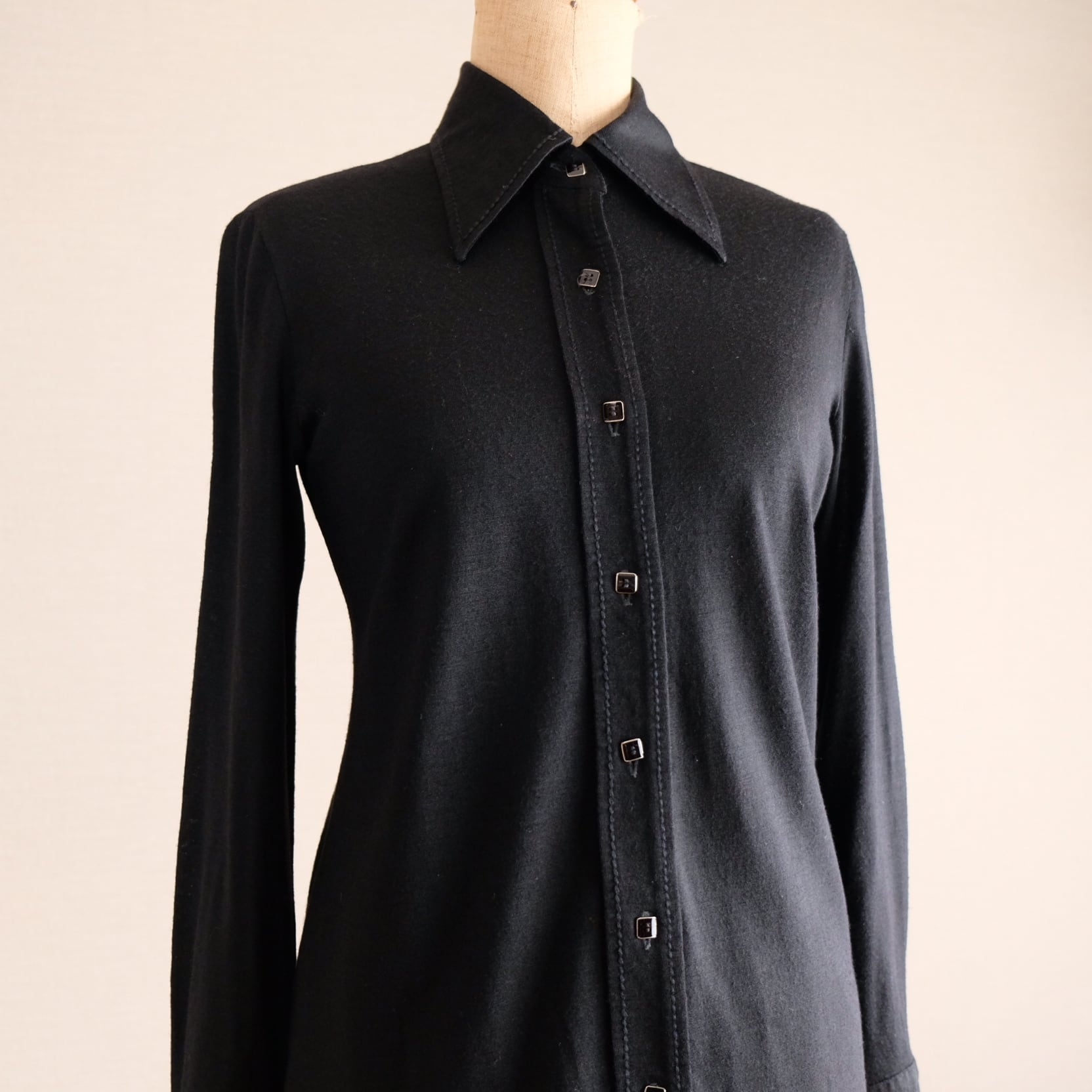 古着 70s ブラックウール混シャツ