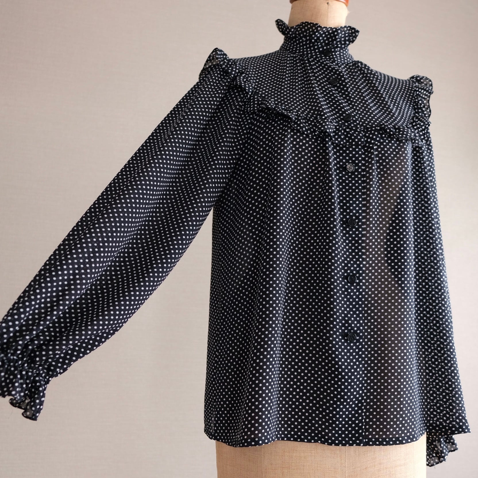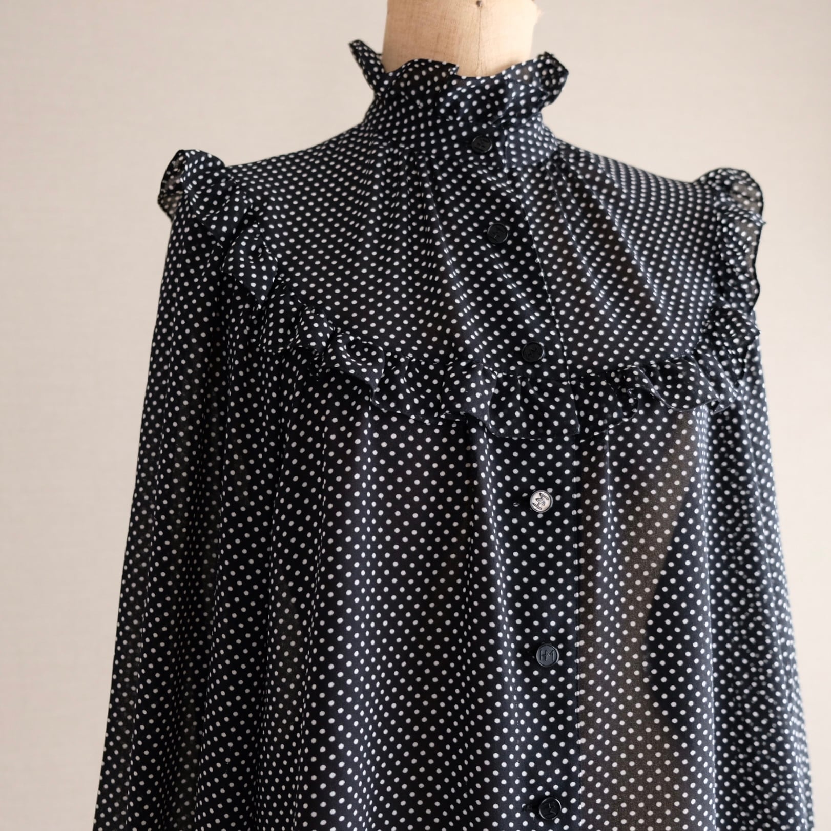 古着 ドット&フリルブラウスHM