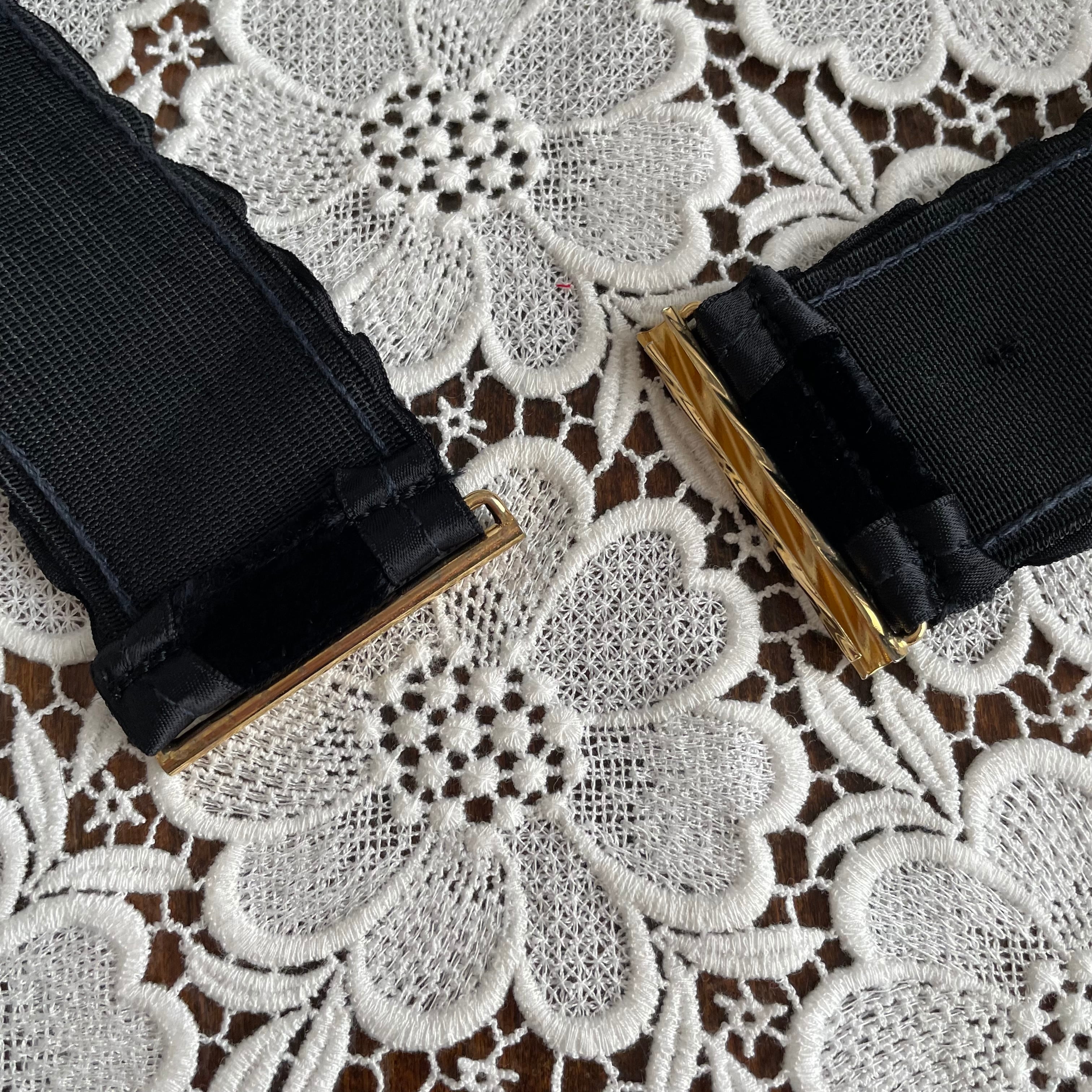 ベロア×フリルデザインがかわいいゴムベルトです。ライン型のバックルもすてきです。