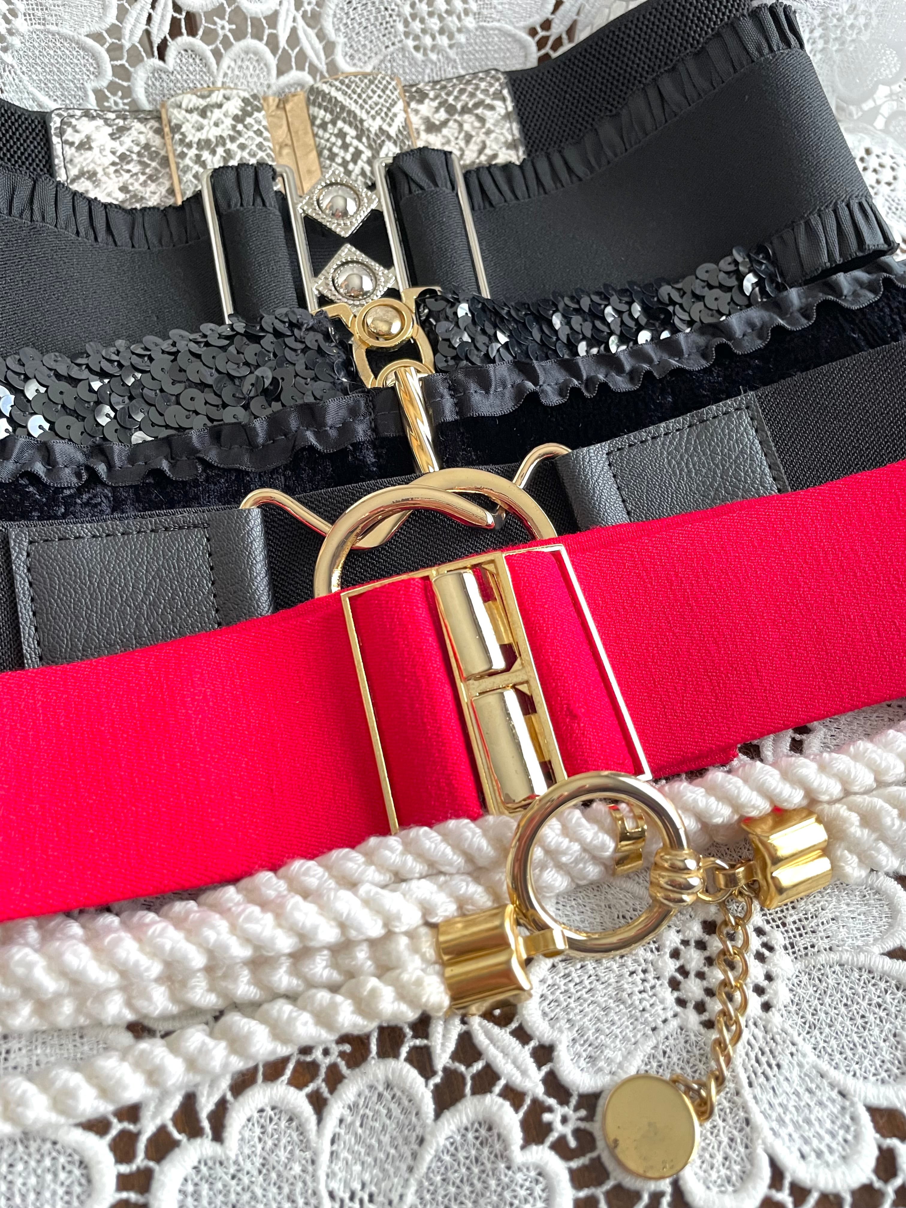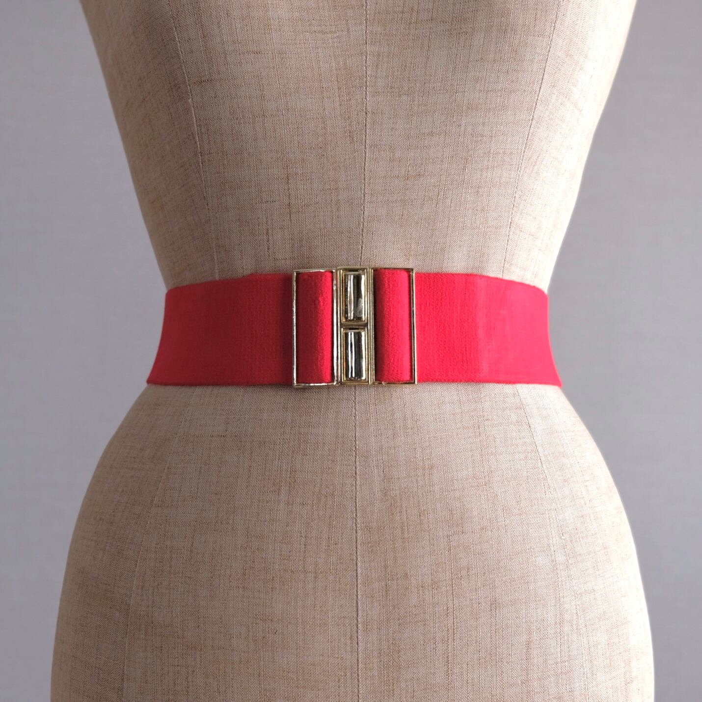 鮮やかなレッドとゴールドが印象的なゴムベルトです。コーデの差し色に❤︎