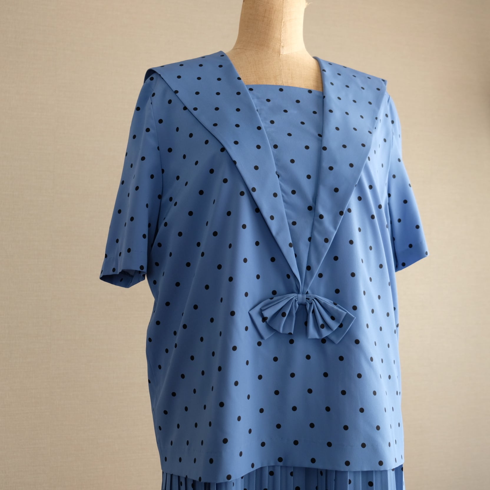 セーラーカラーとリボン&ドットが80sふぁんしーなワンピースです。とてもかわいいお品です。