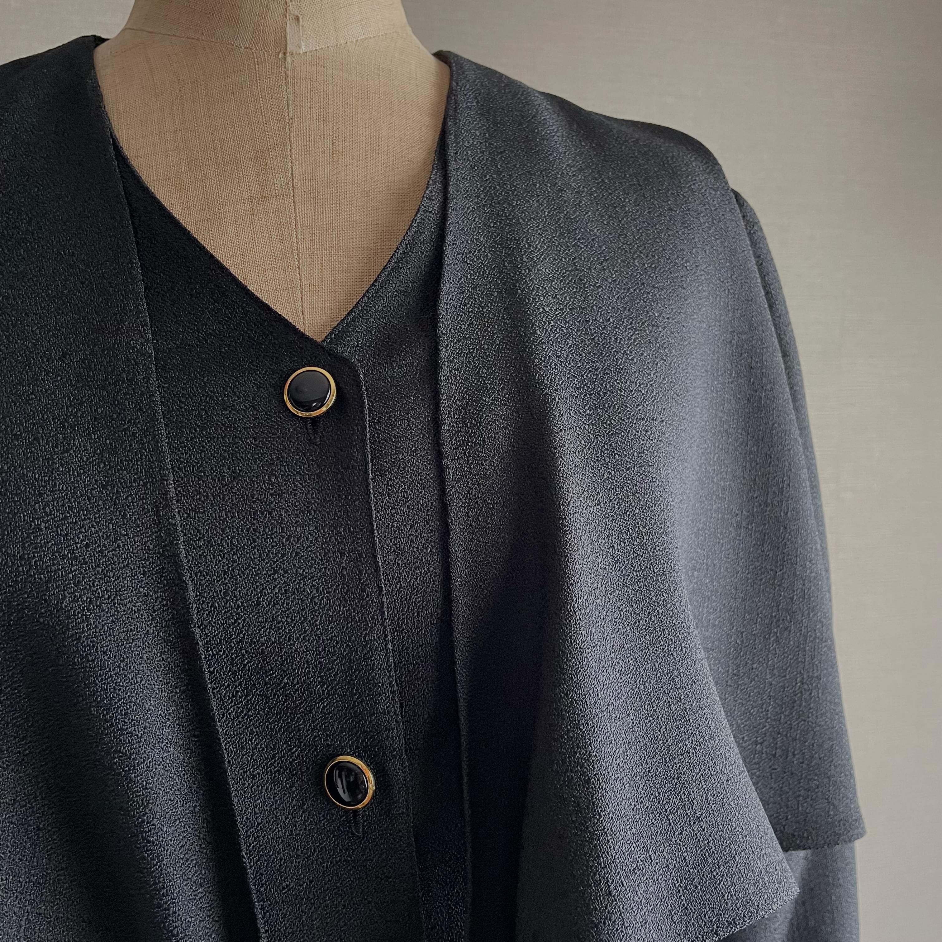 ショールのようなひらひらデザインがおしゃれなジャケットです。80年代から90年代くらいの、時代を感じるデザインがすてきです。