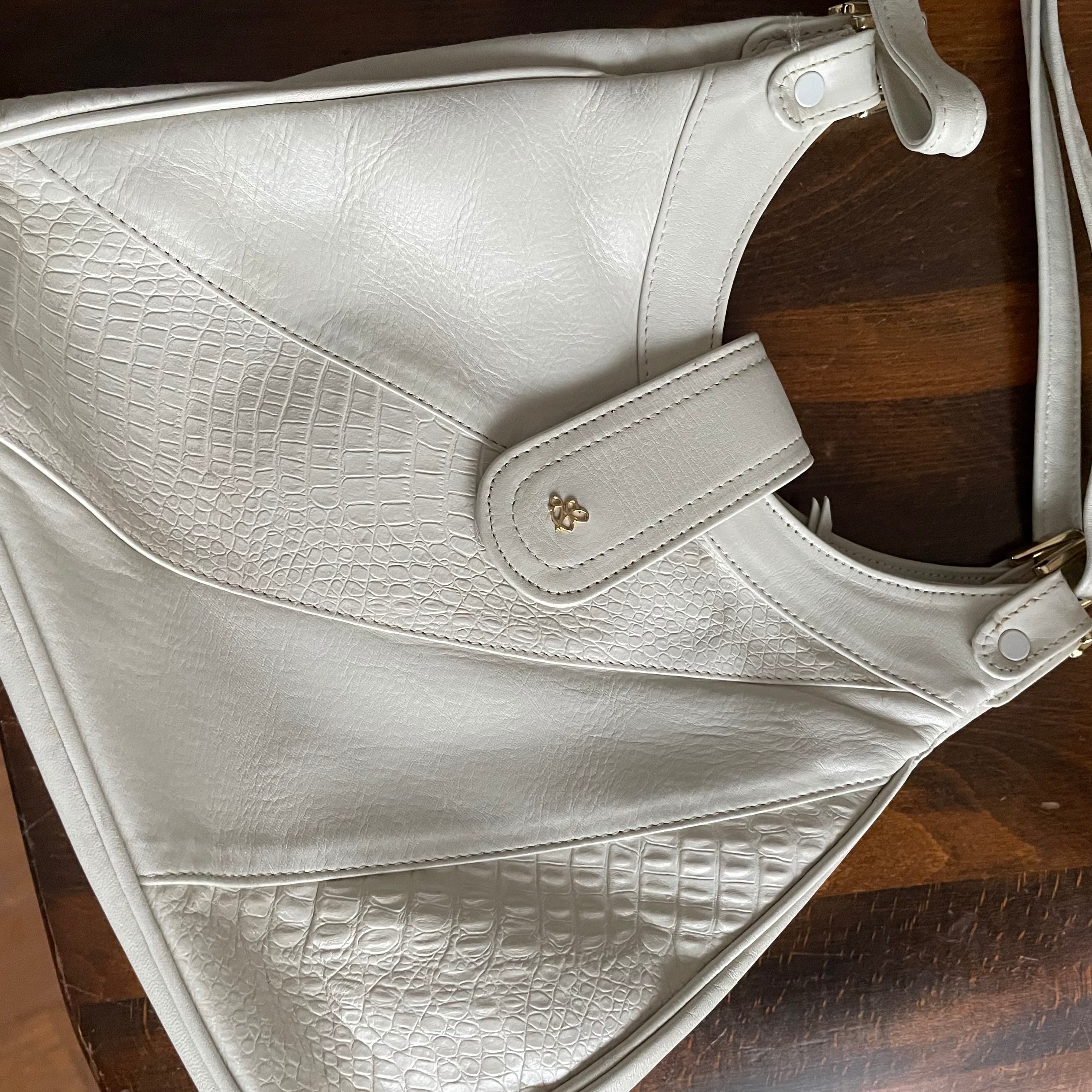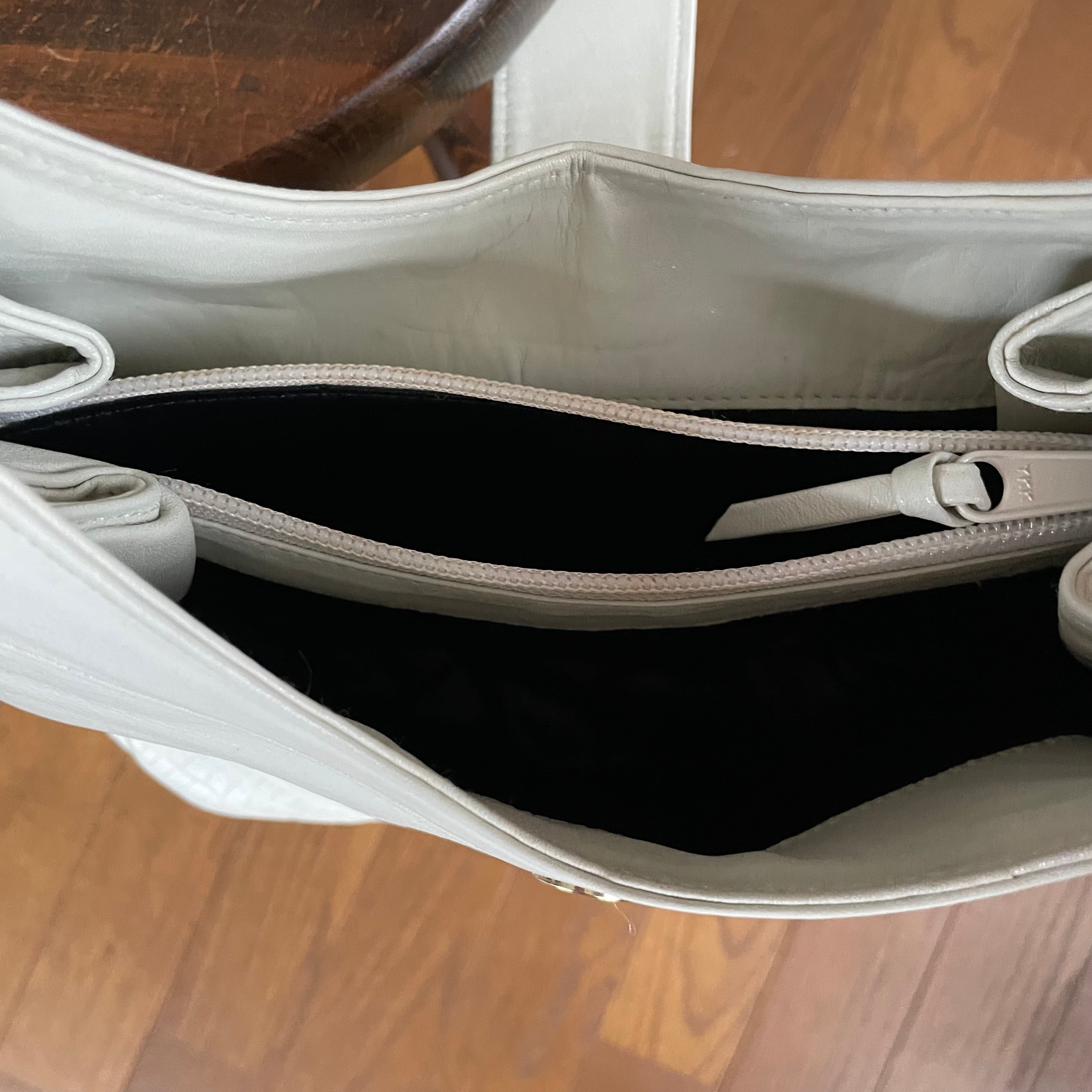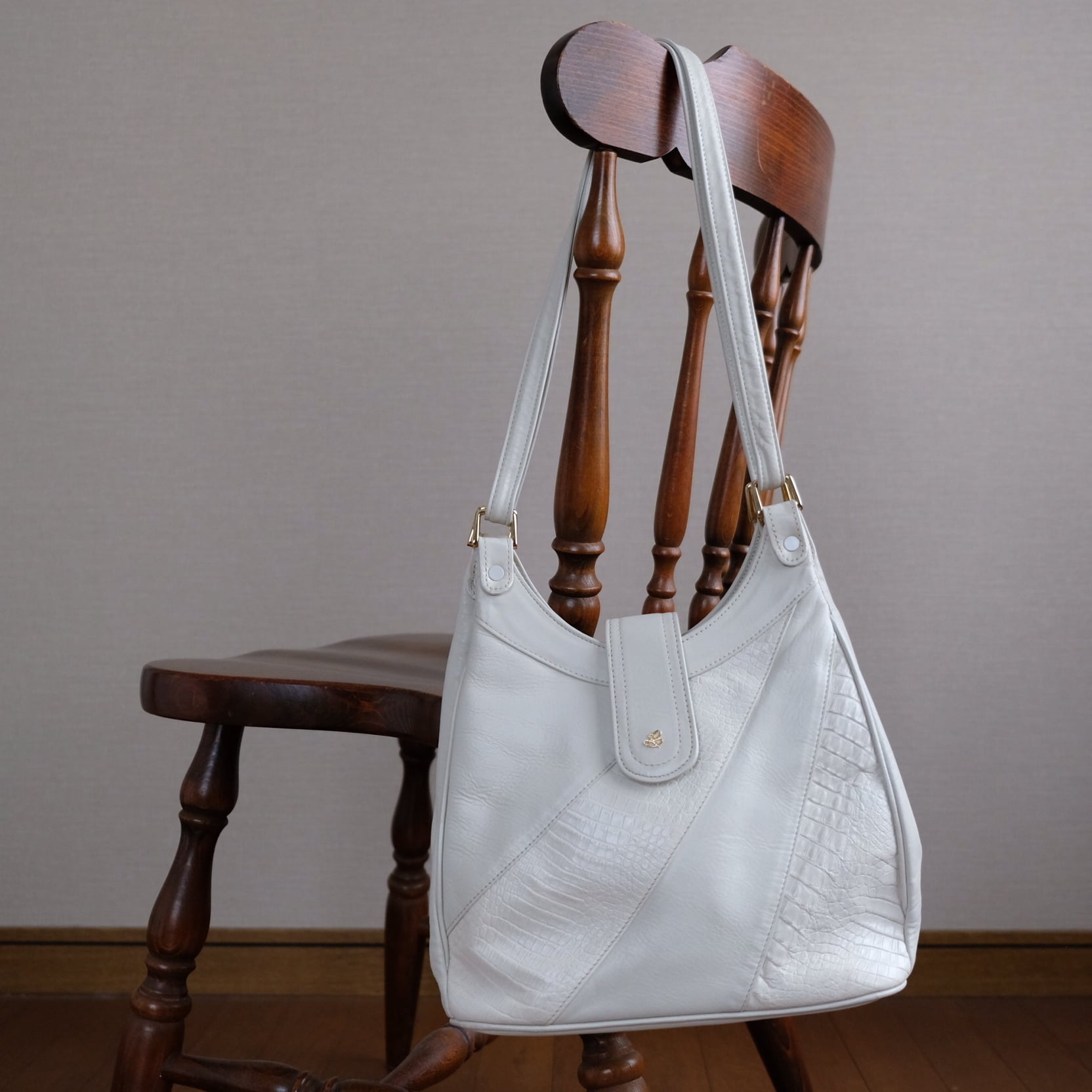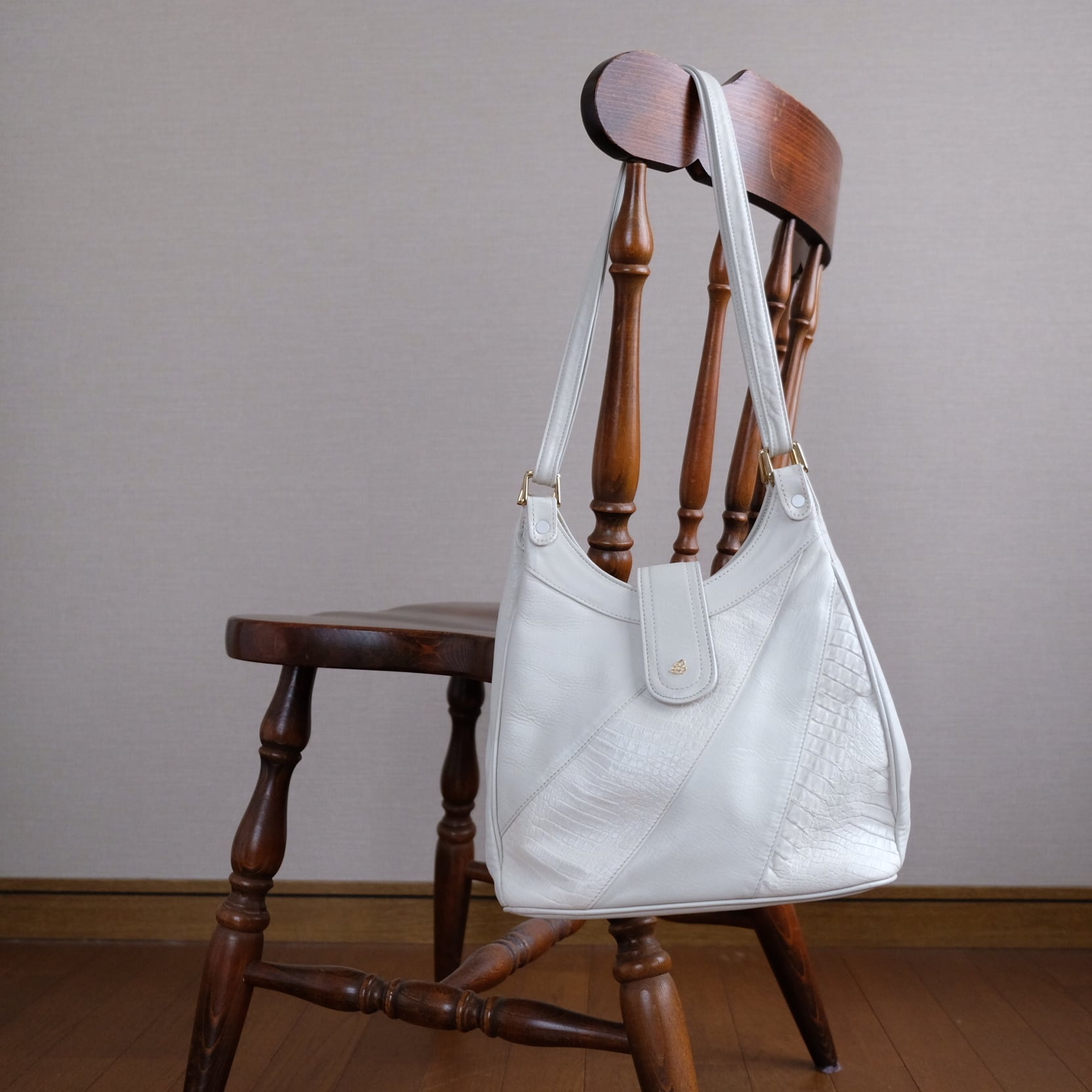 レトロな白のショルダーバッグです。クラシカルなワンピースとの相性抜群です。