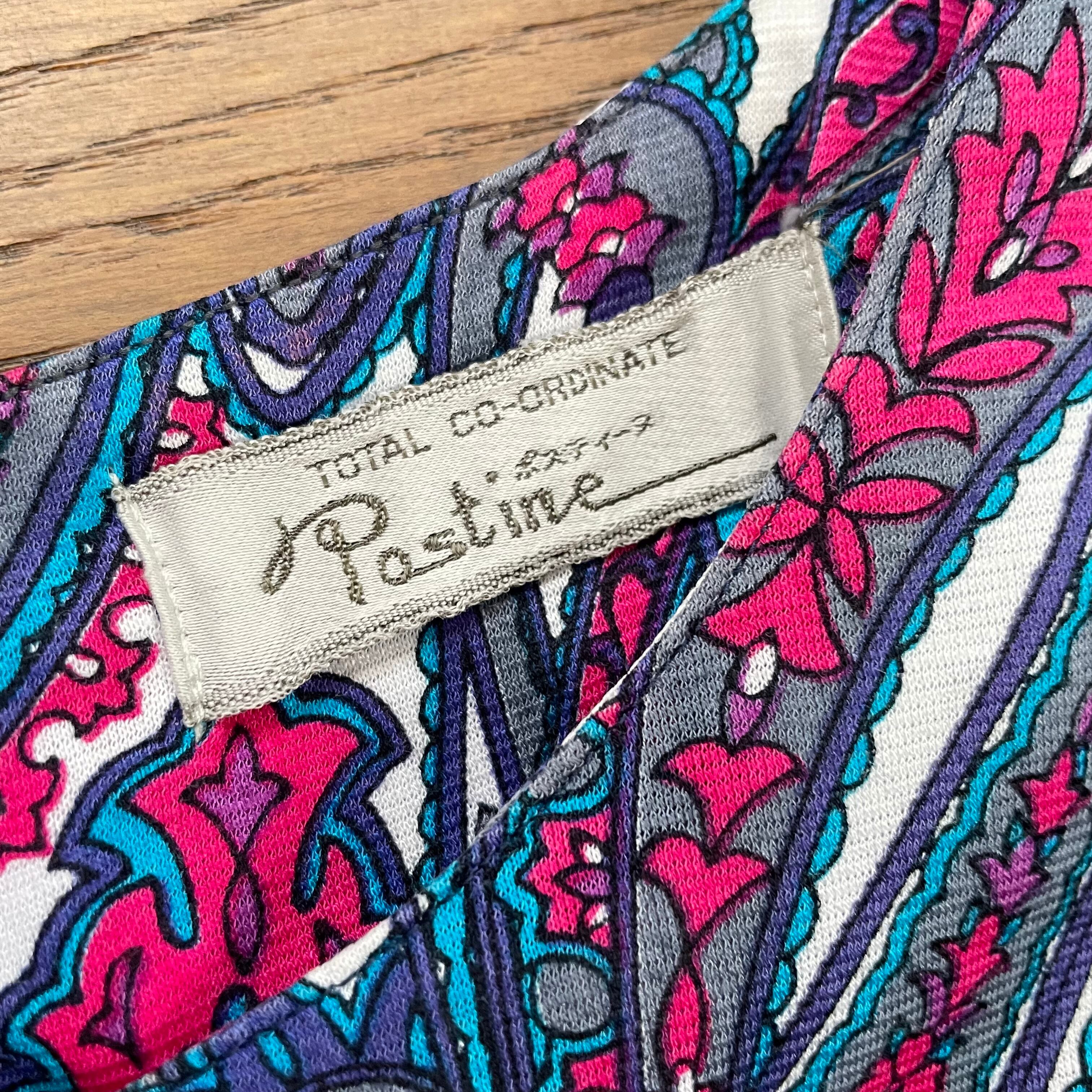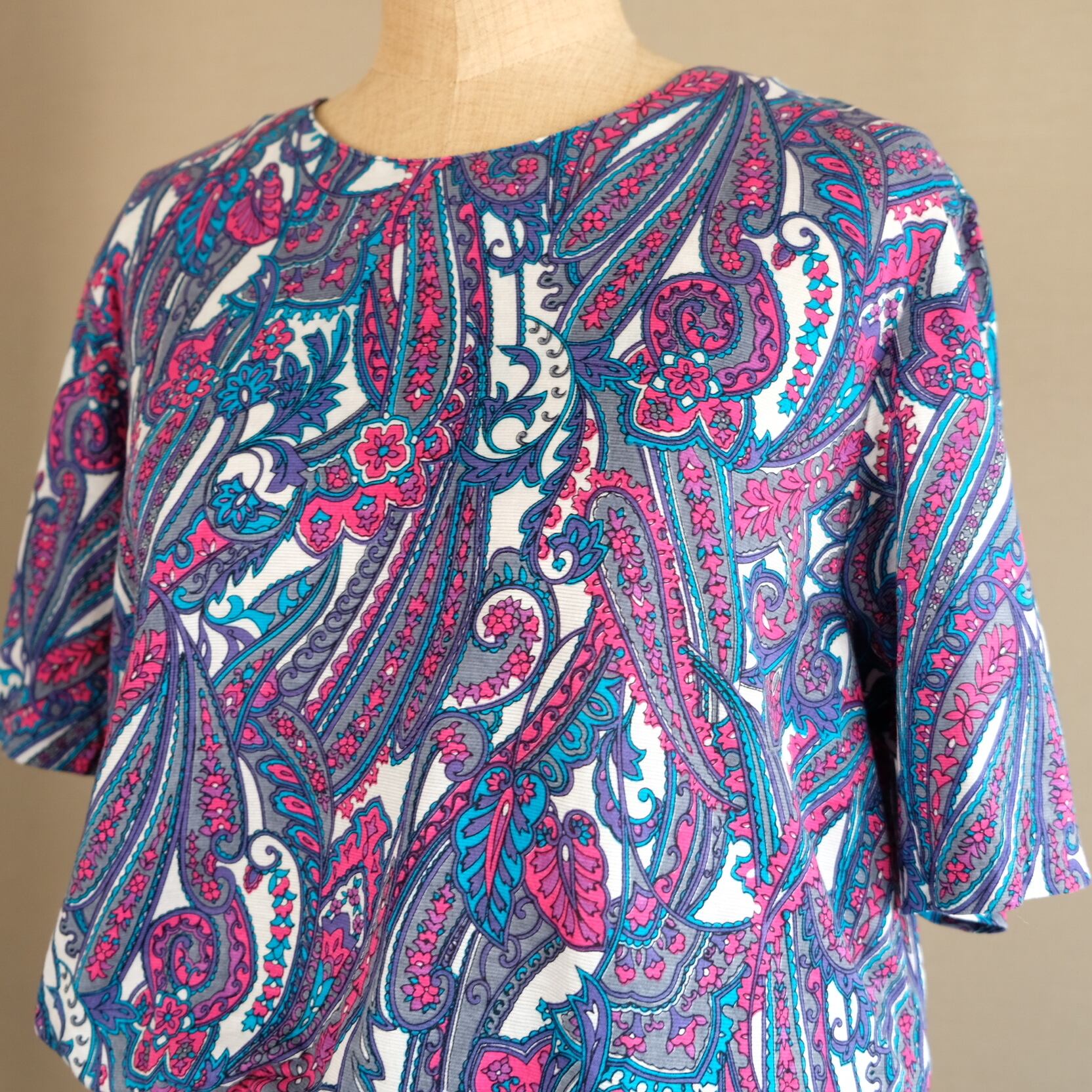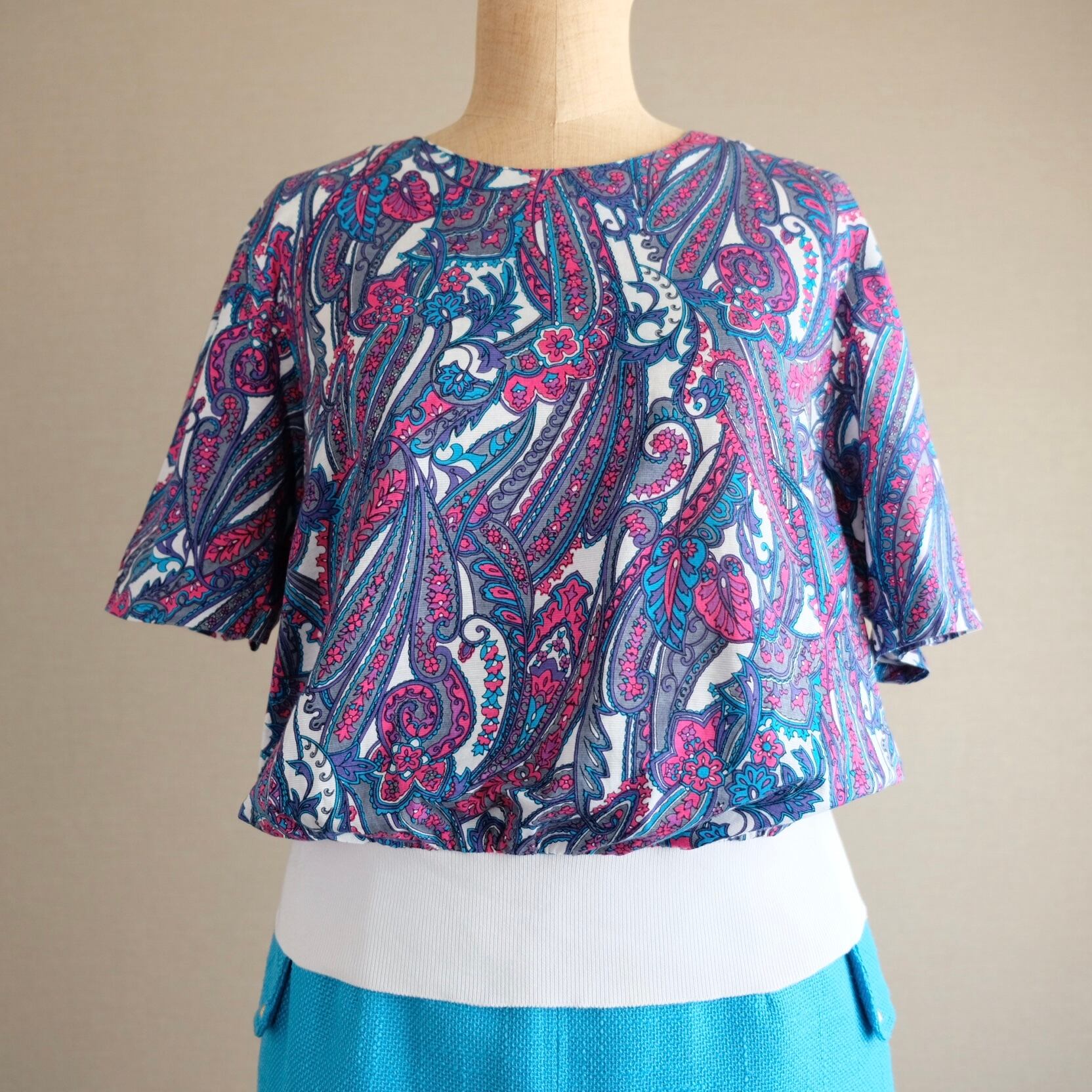 ペイズリーのようなサイケ柄がおしゃれな半袖トップスです。綿100%&長めの袖がgood❤︎