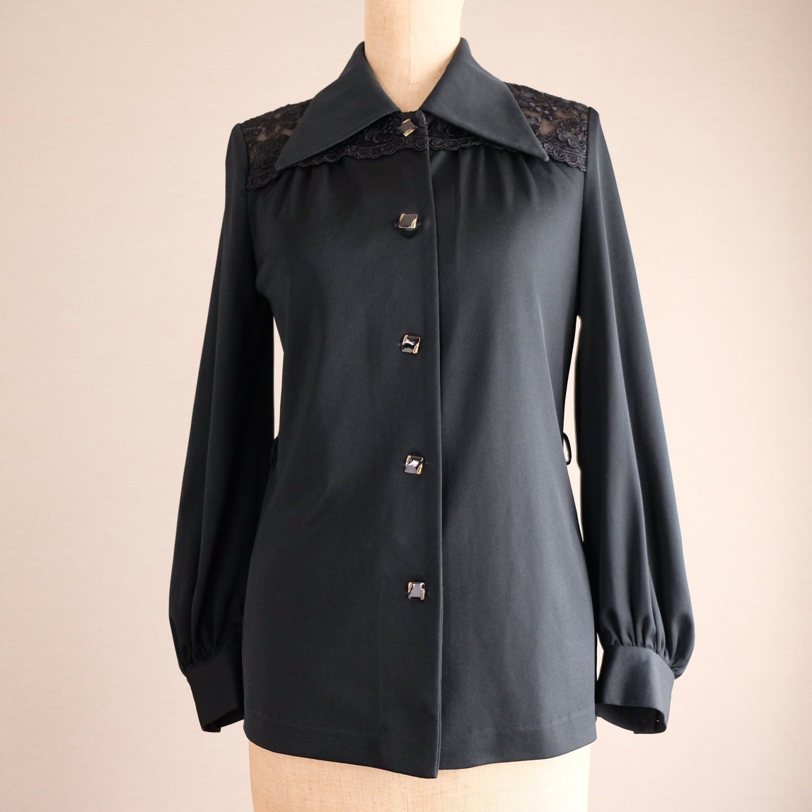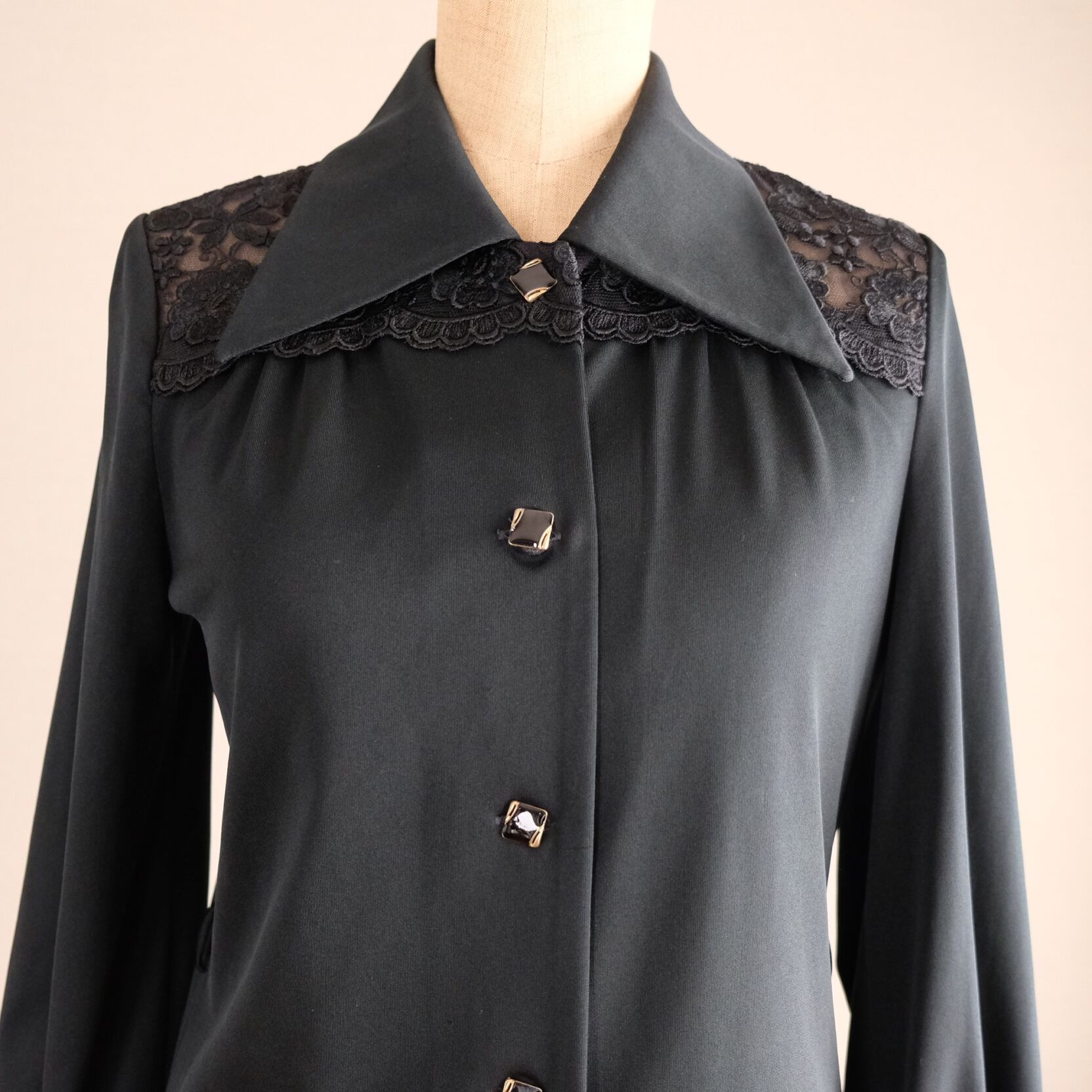 70sブラック肩レースブラウス