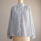 ななめストライプのシックなブラウスです。襟もとにちょっと入った刺繍もすてきです。